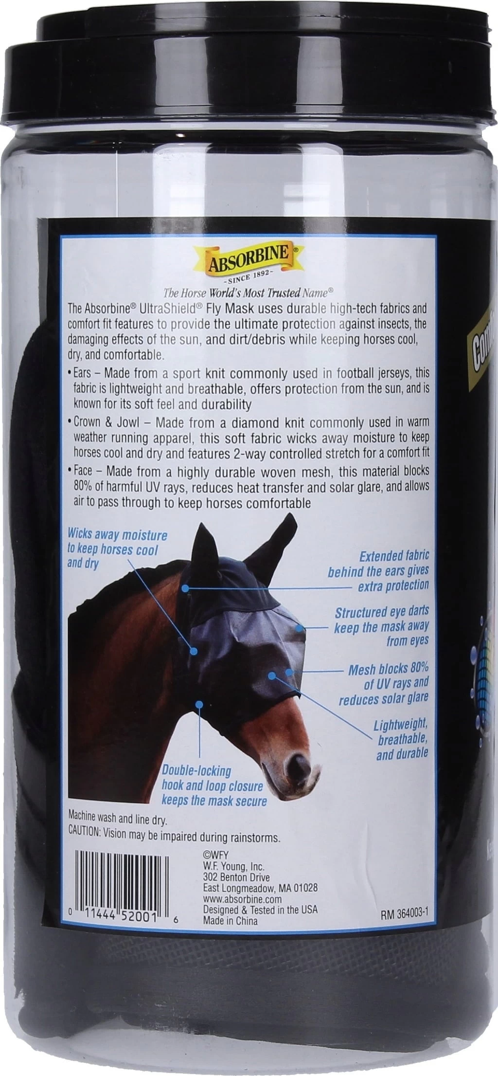 Diese Fliegenmaske von Absorbine wird mit High-Tech-Stoffen hergestellt, welche das Pferd im Kopfbereich optimal kühl und trocken halten. Für die ausgezeichnete Qualität wird das fein strukturierte, UV-Strahlen-abweisende Gesichtsnetz mit stretchfähigem Material im Backen- und Stirnbereich und Ohrenhöhlen aus robustem Funktionsgewebe sowie einem starken doppelten Klettverschluss kombiniert. Auswölbungen im Augenbereich sorgen für noch angenehmeren Tragekomfort.