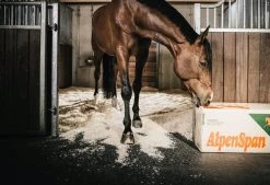 Bei der Herstellung nimmt AlpenSpan besonders viel Rücksicht auf die Gesundheit der Pferde. Deshalb wird besonders großen Wert auf die hochwertige Funktion des Einstreus gelegt. AlpenSpan wirkt dem nach wie ein Schwamm, der Feuchtigkeit des Urins optimal aufnimmt und dadurch den Ammoniakgeruch in den Stallungen erheblich verringert und der Verbreitung von Kolibakterien keine Chance gibt. Außerdem beeinflusst das AlpenSpan Einstreu die Temperatur und Klimatisierung in Stall und Box positiv.