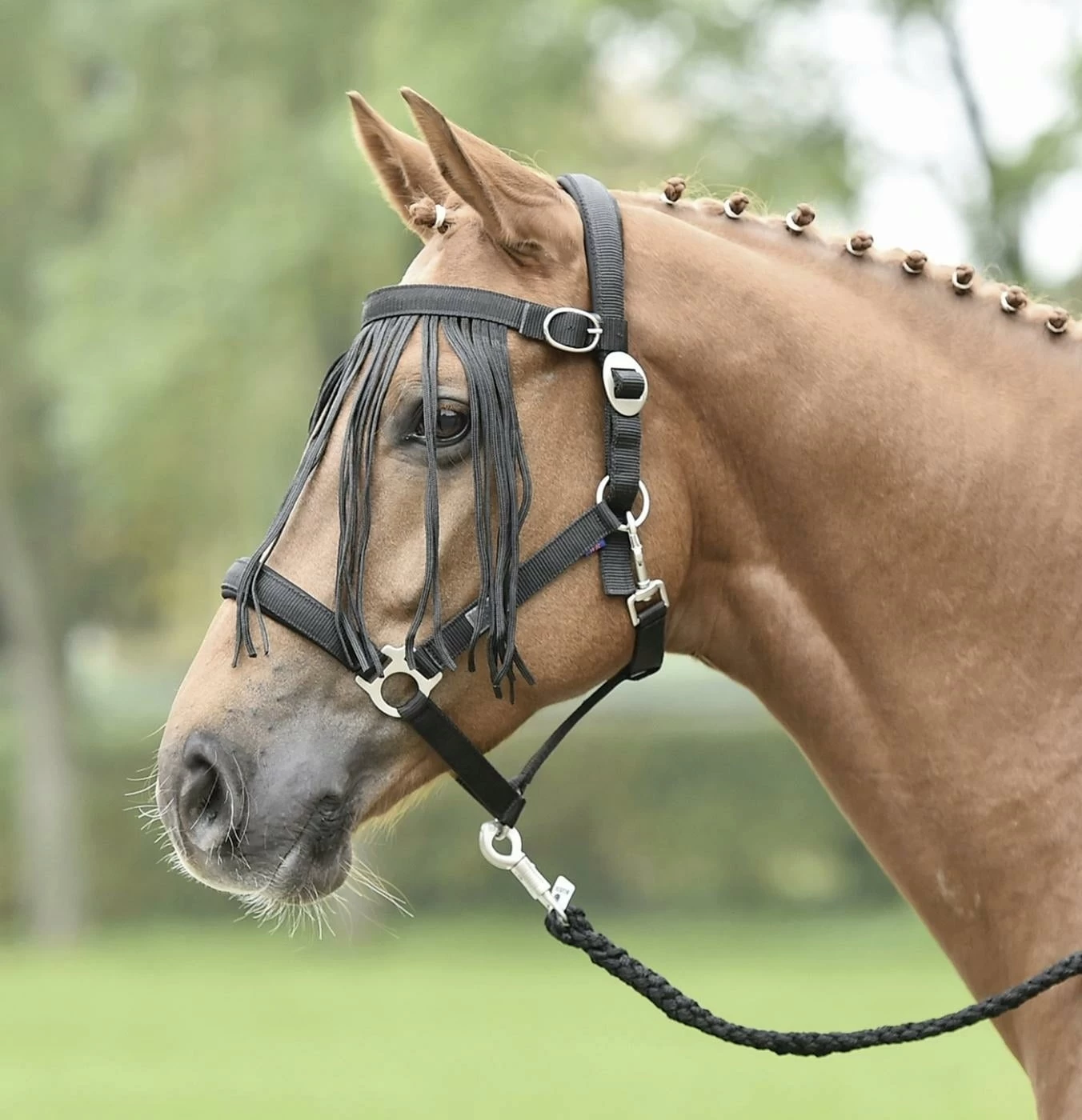 Praktischer und leicht anzubringender Fliegenschutz. Die Länge des Stirnbands lässt sich verstellen.