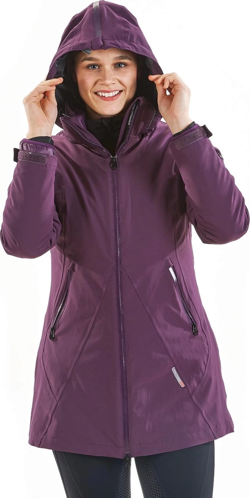 der die Kapuze bei Bedarf erweitert fĂĽr das Tragen ĂĽber den Reithelm - wasserdichter 2-Wege HauptreiĂźverschluss mit Kinnschutz, Sattelschutz zur