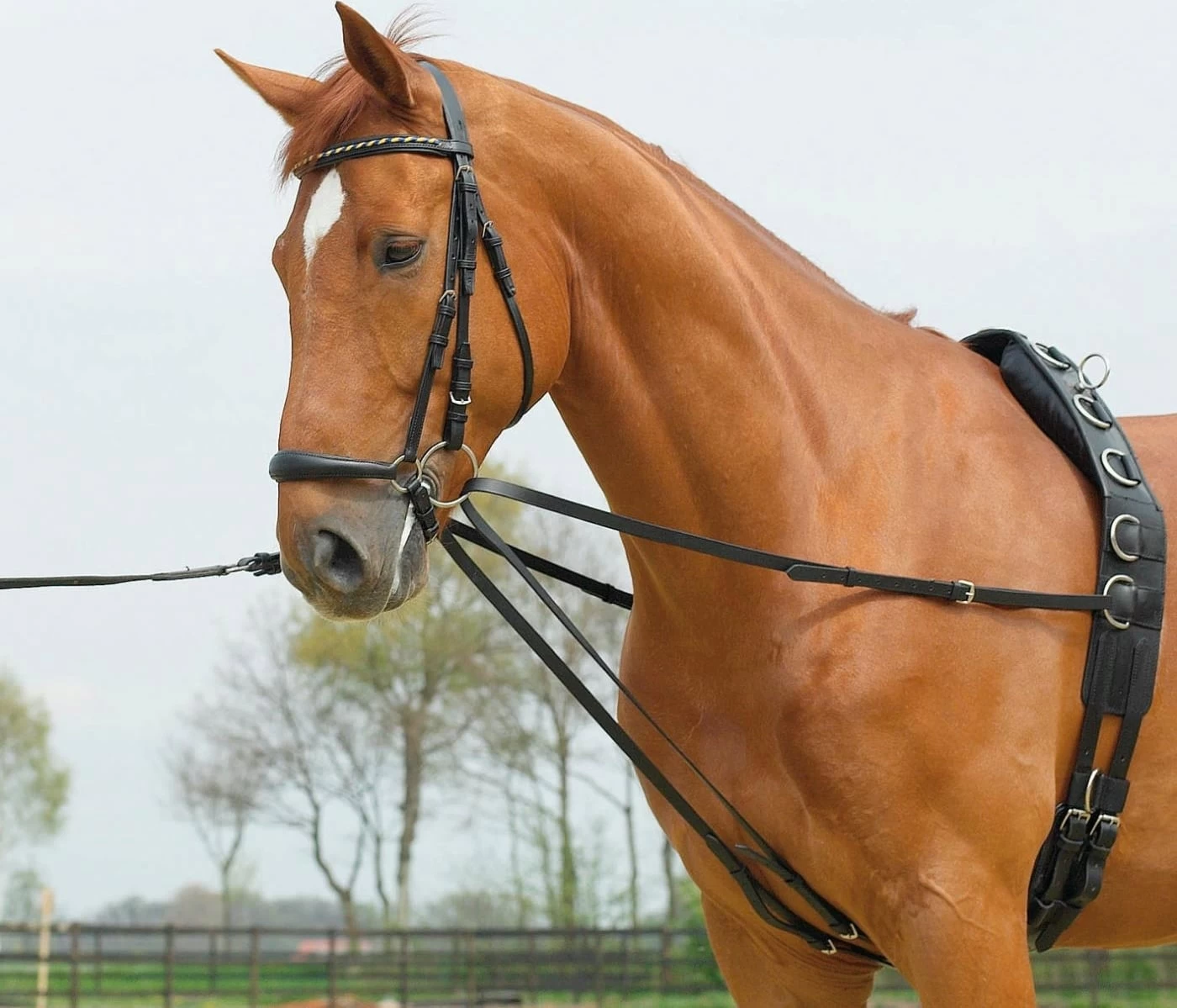 Verstellbare Lederriemen die am Ende verschnallt werden und zum ausbinden bei der täglichen Arbeit an der Longe oder unter dem Reiter zu verwenden ist.