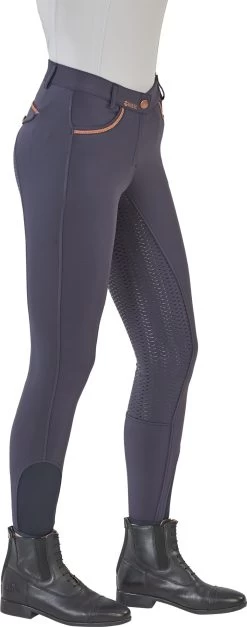 Die MALIKA ist eine erstklassige Reithose aus hochelastischem und geschmeidigem Funktionsmaterial. Ihr Stoff schmiegt sich der Haut wunderbar an. Ein Elastikbund und der klassische Schnitt mit mittlerer Taillenhöhe unterstützen den äußerst angenehmen, geschmeidigen Tragekomfort. Auch ihre Komfortbeinabschlüsse verfügen über anschmiegsame, dehnbare Elastikeinsätze. Mit rutschfestem Grip-Vollbesatz aus Silikon.