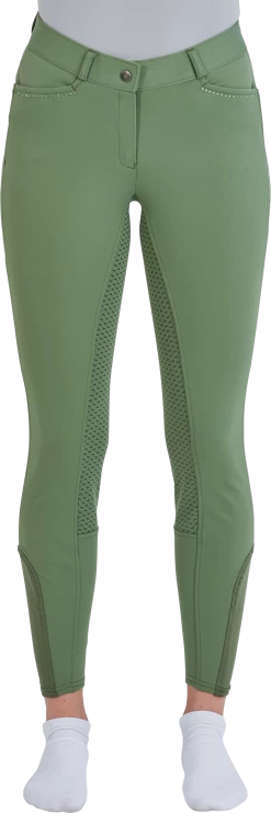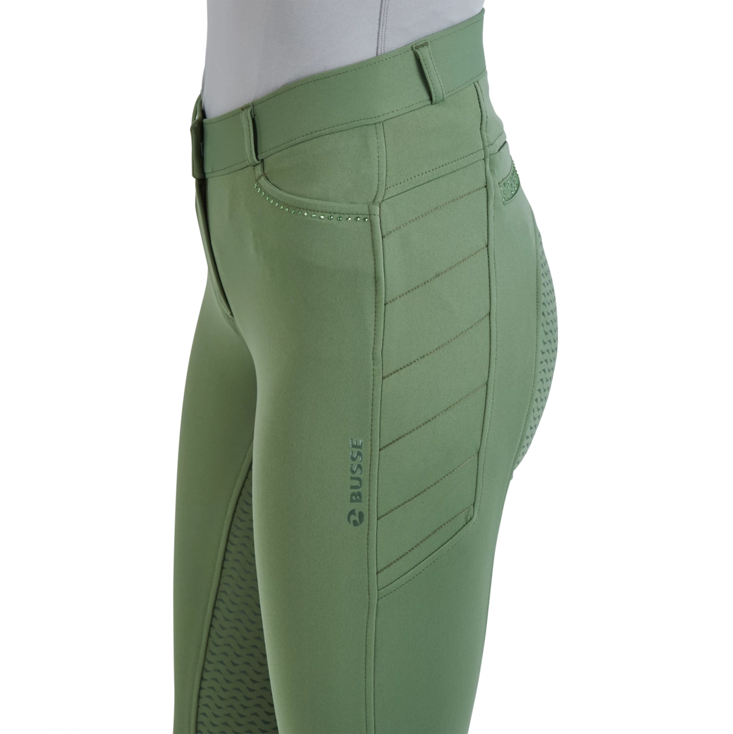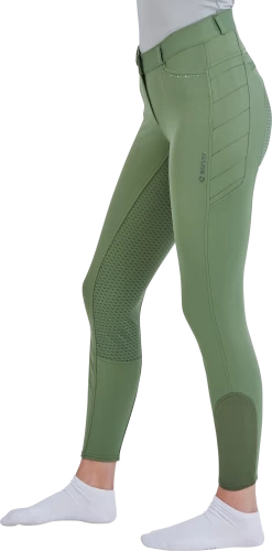 Die kuschelige Winterreithose besteht aus einem strapazierfähigem, wärmenden Funktionsmaterial. Dank der gebürsteten Innenseite bietet die Hose nicht nur einen tolllen Kälteschutz, sondern auch ein angenehm weiches Tragegefühl. Die zwei Einschubtaschen vorne, sowie die zwei geschlossenen Gesäßtaschen sind mit Ton-in-Ton Strassteinen verziert und sorgen so für einen glamourösen Look. Im Gesäßbereich ist außerdem eine geschickt versteckte und praktisch positionierte Smartphone-Tasche zu finden.