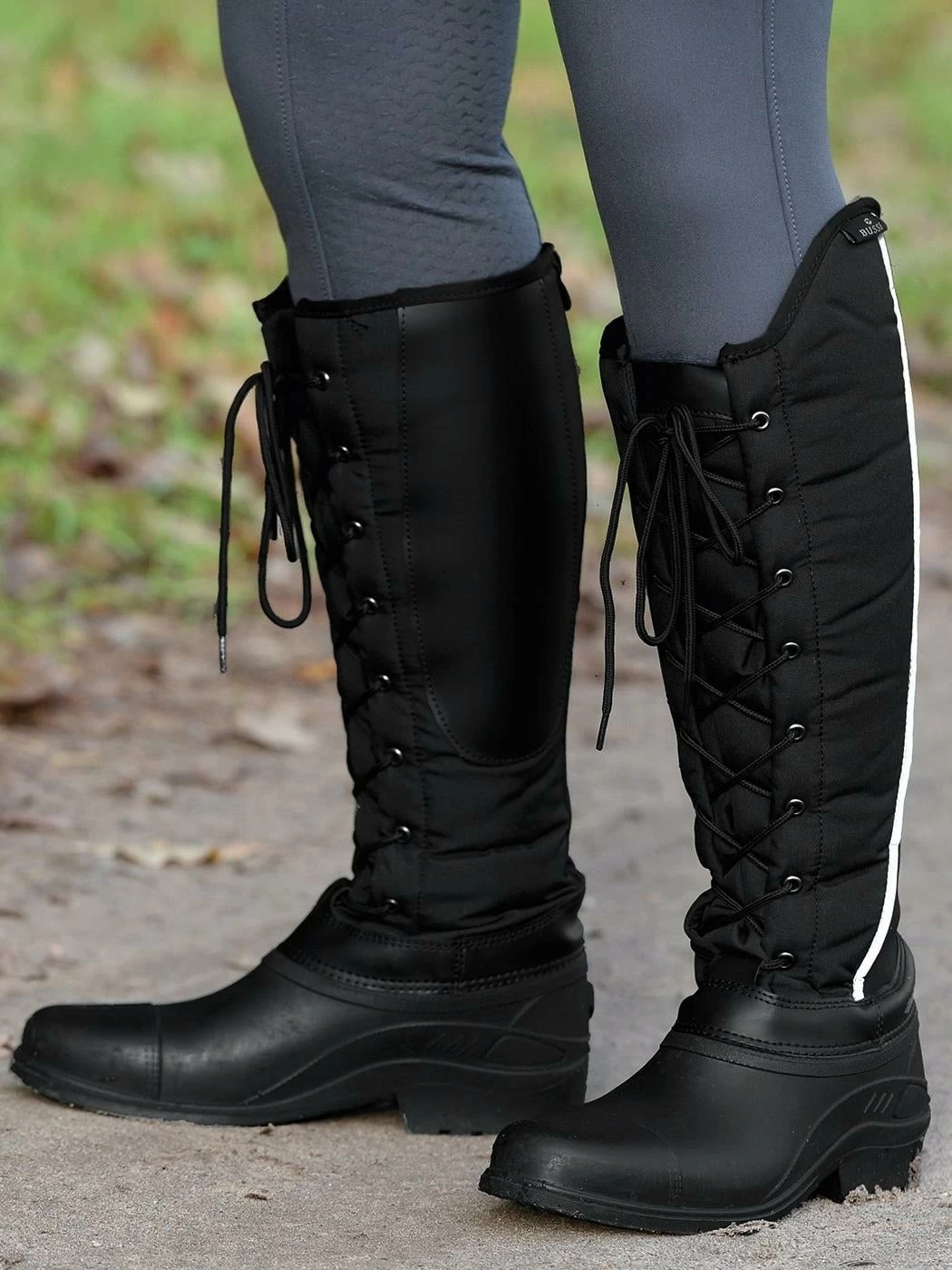 - Stabiles, wasserdichtes TPR-Fußteil in Reitstiefeloptik mit Profisohle und festem Absatz, komplett gefüttert mit warmem Webpelz