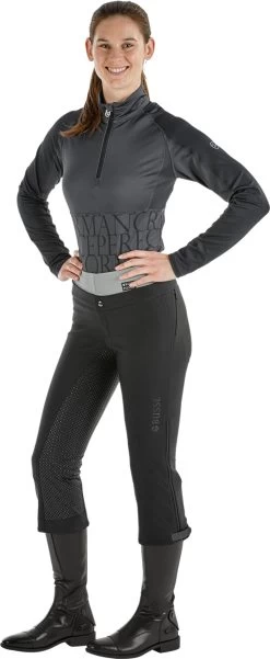 Sportliche, funktionale Überziehhose zum Reiten mit rutschfestem Silikon-Vollbesatz. Ein bequemer, elastischer Hosenbund mit Gürtelschlaufen sorgt für eine ideale Passform. Wasser- und windabweisende, atmungsaktive und feuchtigkeitsregulierende Eigenschaften durch dreilagiges, elastisches Softshell-Material mit Membran, kuscheliges wärmendes Innenfleece und wasserfeste Reißverschlüsse. Das Eindringen von Wassermolekülen wird abgewehrt und gleichzeitig das Austreten von Wasserdampf ermöglicht. Zusätzliche Silikonapplikationen an den Innennähten garantieren besseren Halt an den Stiefeln. Beinabschluss mit Klettverschlüssen und Reißverschlüssen für ein einfaches An- und Ausziehen.