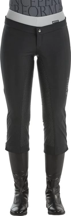 Sportliche, funktionale Überziehhose zum Reiten mit rutschfestem Silikon-Vollbesatz. Ein bequemer, elastischer Hosenbund mit Gürtelschlaufen sorgt für eine ideale Passform. Wasser- und windabweisende, atmungsaktive und feuchtigkeitsregulierende Eigenschaften durch dreilagiges, elastisches Softshell-Material mit Membran, kuscheliges wärmendes Innenfleece und wasserfeste Reißverschlüsse. Das Eindringen von Wassermolekülen wird abgewehrt und gleichzeitig das Austreten von Wasserdampf ermöglicht. Zusätzliche Silikonapplikationen an den Innennähten garantieren besseren Halt an den Stiefeln. Beinabschluss mit Klettverschlüssen und Reißverschlüssen für ein einfaches An- und Ausziehen.