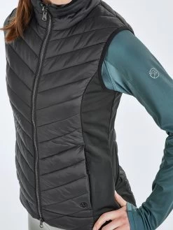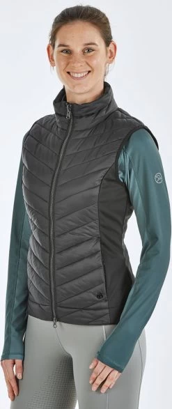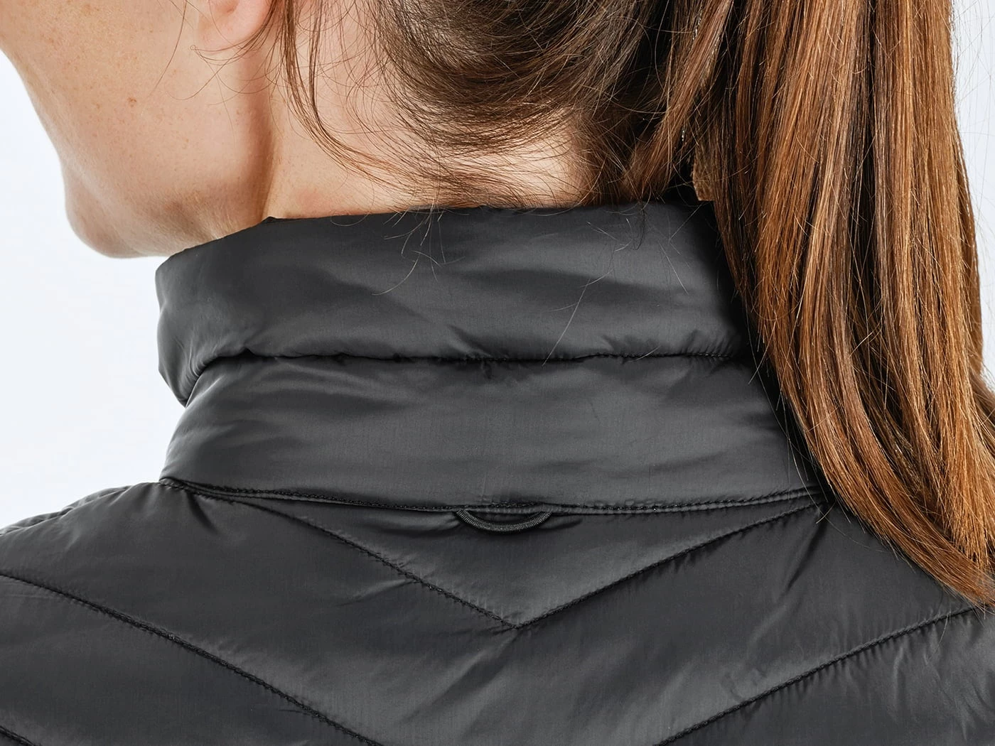 Sportlich und tailliert zeigt sich diese Funktions-Steppweste. Mit zwei praktischen Reißverschlusstaschen und Armausschnitt mit Lycra®-Einfassung. Ein 2-Wege-Hauptreißverschluss mit Sattelschutz verhindert das Abkratzen des empfindlichen Leders.
