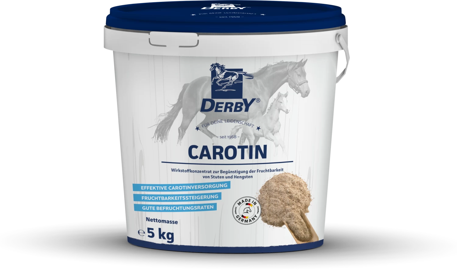 Ergänzungsfuttermittel für Pferde mit einem hohen Gehalt an ß-Carotin und Vitamin E. Es kann die Fruchtbarkeit bei Stuten sowie die Spermaqualität bei Hengsten verbessern. Darüber hinaus kann es die Abwehrkräfte des noch ungeborenen Fohlens stärken.