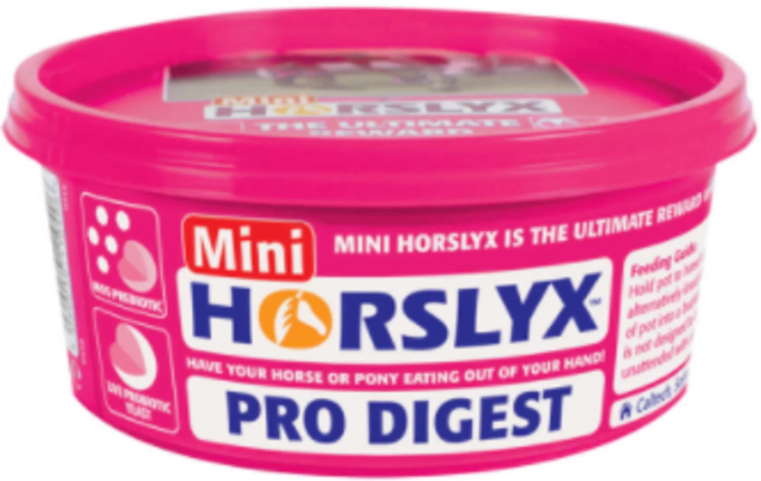 Neben dem bekannt ausgewogenen Nährstoffmix, enthält Horslyx Pro Digest zermahlene Seealgen und Anteile der Ulmenrinde. Die Seealgen haben eine puffernde Wirkung im Dickdarm und helfen so, zusammen mit dem beim Lecken der Leckschalen gebildeten Speichel, der reich an Bicarbonaten ist, eine Übersäuerung zu vermeiden.