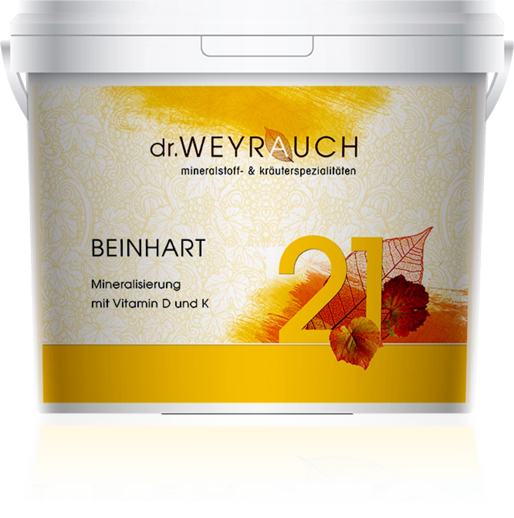 Nr. 21 Beinhart von Dr. Weyrauch ist eine Mineralisierung und enthält einen sorgfältig entwickelten Komplex aus roten Weinblättern und Eisenkraut, abgestimmt mit den Vitaminen D und K1 sowie wichtigen Spurenelemente.
