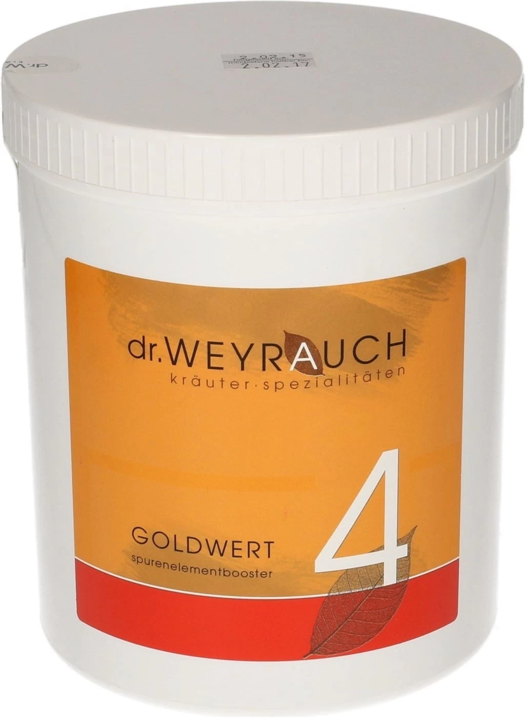 Dr. Weyrauchs Nr. 4 Goldwert enthält hoch bioverfügbare Spurenelemente in Chelatform, die in einer Rezeptur aus erlesenen Kräutern, Gewürzen, sowie Frucht- und Wurzelbestandteilen eingebettet sind. Bei der Formulierung wurde ein besonderes Augenmerk darauf gelegt, dass der Nährstofftransport besonders schnell erfolgen und die Zellen erreichen kann.