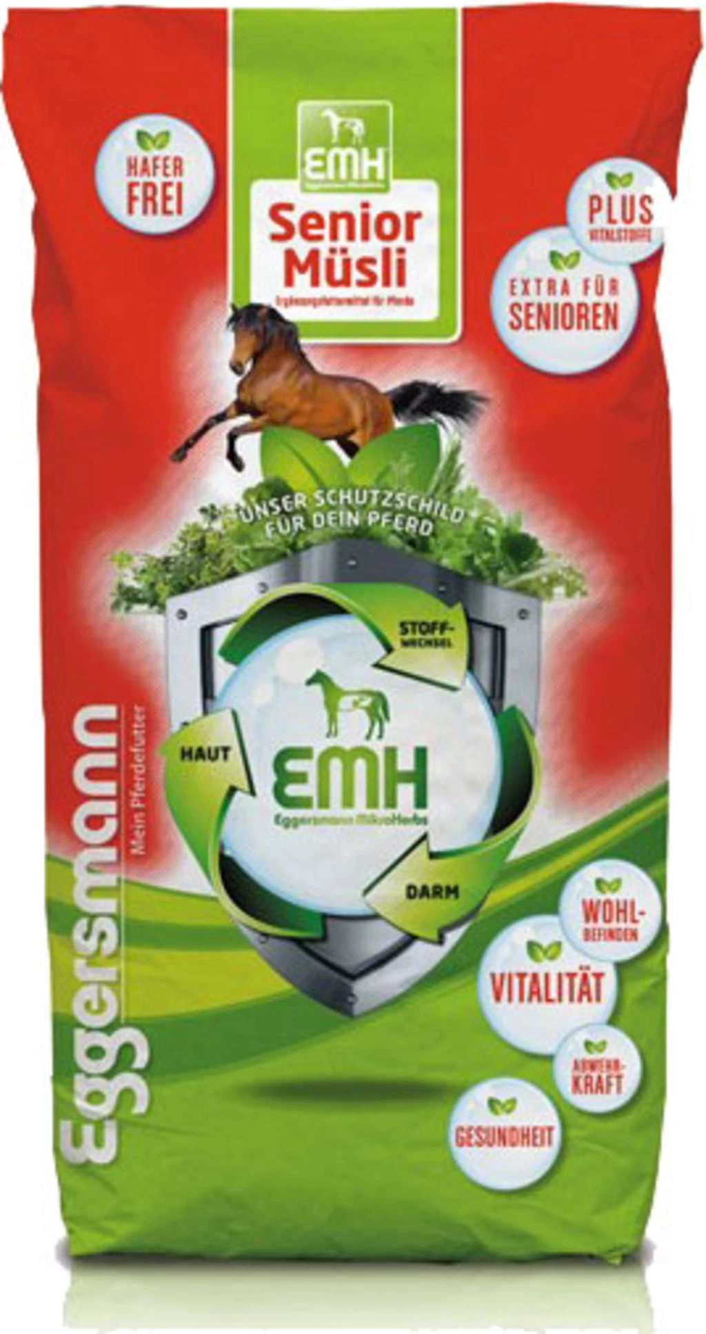 EMH Senior Müsli ist eine innovative, mit EMH aufgewertete Spezialmischung, welche die Bedürfnisse alter Pferde berücksichtigt.