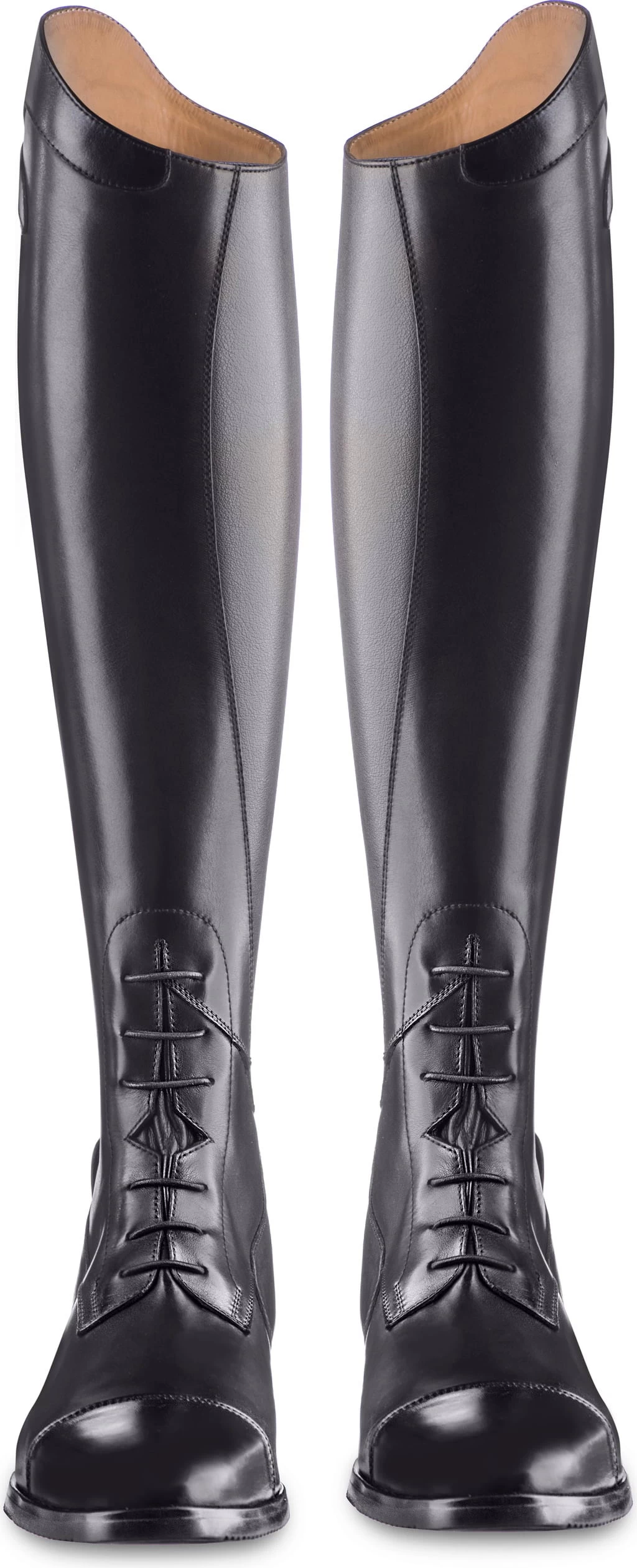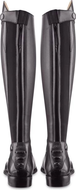 Diese wunderschönen Reitstiefel mit Schnürung und edler Stickerei an der Zehenkappe wurden vom italienischen Topdesigner Franco Tucci entworfen. Ihre anatomische Form und der Elastikeinsatz am rückwärtigen Reißverschluss sorgen für perfekten Sitz. Die rutschfeste Sohle aus Spezialgummi bietet eine hohe Griffigkeit und sicheren Halt im Steigbügel.