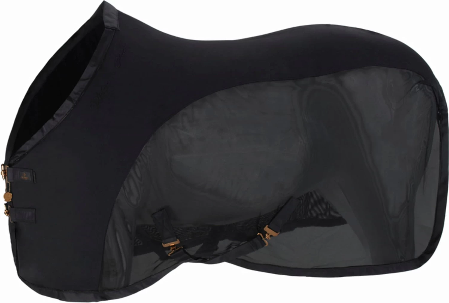 Ein Glossy-Polster schützt den empfindlichen Widerrist vor dem Aufscheuern. Dieser verläuft in einen edlen, breiten Glossy-Einfass über. Gemeinsam mit einer dezenten Lurex-Biese und dem beidseitigen Platinum Pure-Schriftzug wirkt die Decke schlicht und elegant zugleich.