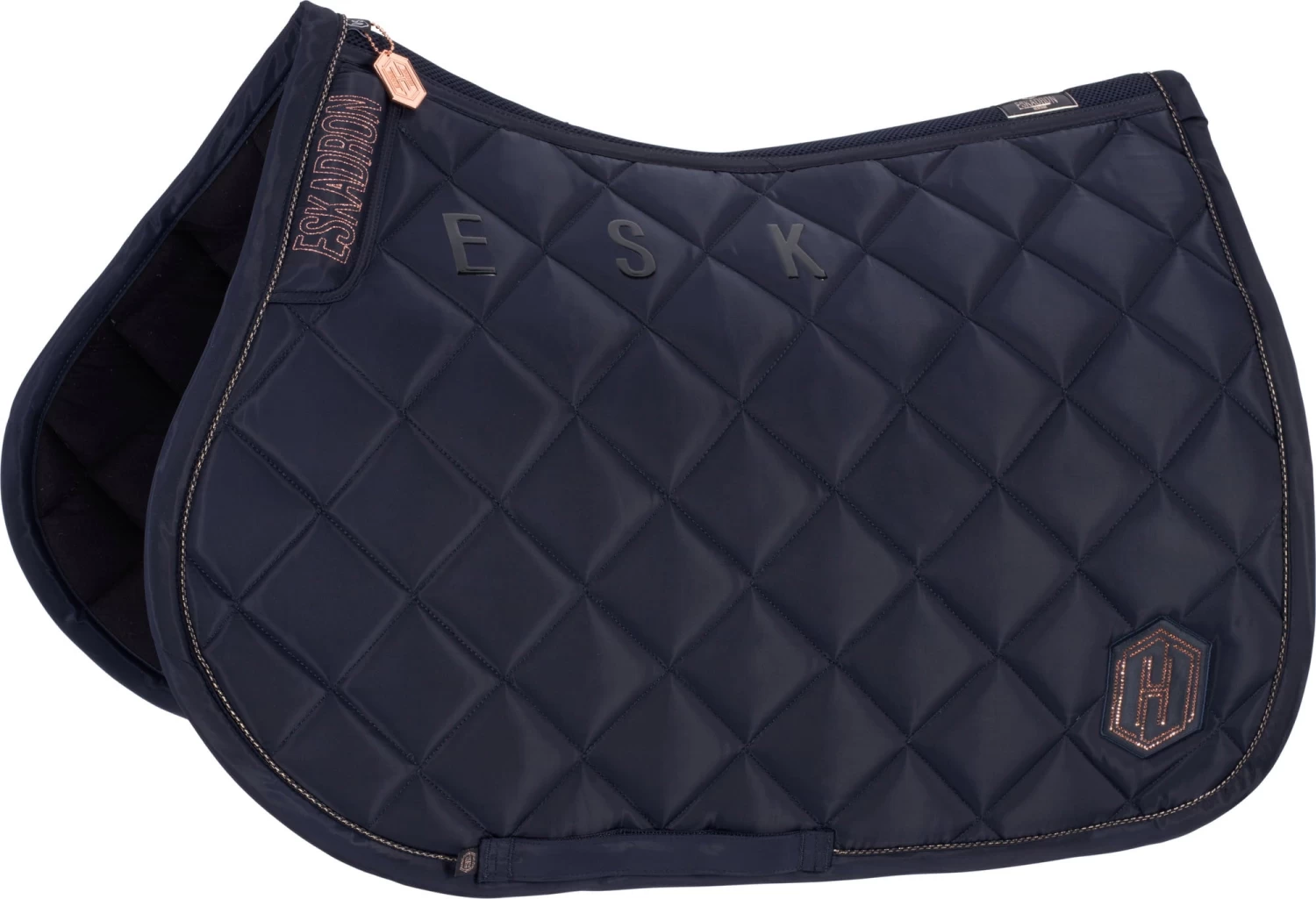 Das beidseitig angebrachte Heritage-Emblem aus Kristallen und eine elegante Lurex-Kordel auf Satin-Einfassung machen die Schabracke zu einem optischen Hingucker.