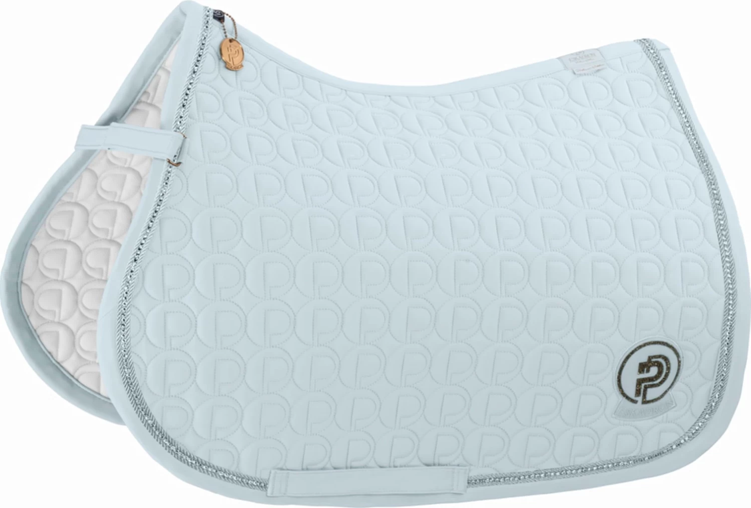 Diese stilvolle Sattelunterlage kommt mit exklusiver Platinum-Steppung und wird durch glitzernde Kollektions-Emblemes an beiden Seiten abgerundet. Zudem perfektioniert eine edle „Kordel-Kiristallstein-Kordel“-Variation das glamouröse Design.