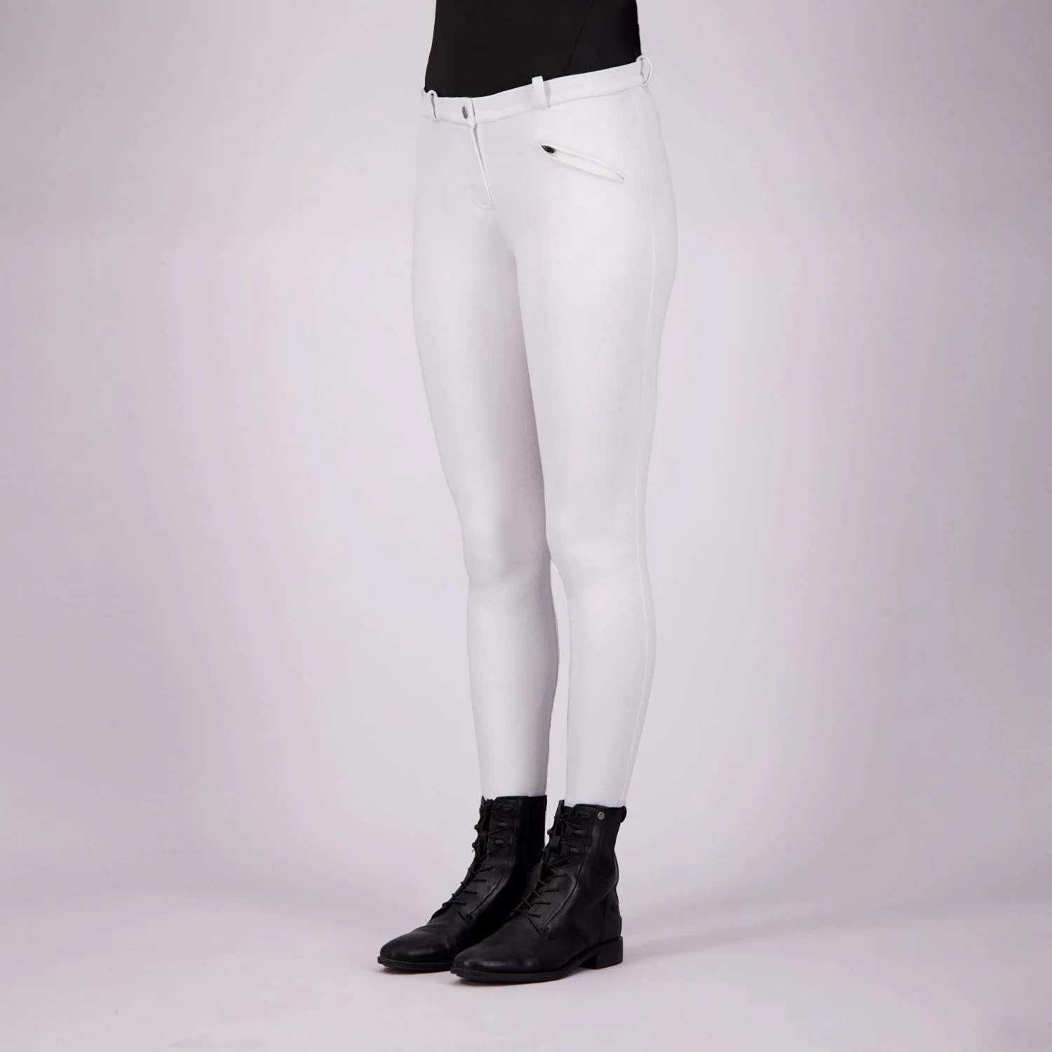 Sportliche Kinderreithose aus atmungsaktivem und feuchtigkeitsregulierendem Material. Neben dem stets trockenen Tragegefühl schmiegt sich das Kompressionsgewebe mit 4-Wege-Stretch wie eine zweite Haut an Bein, Gesäß und Hüfte.