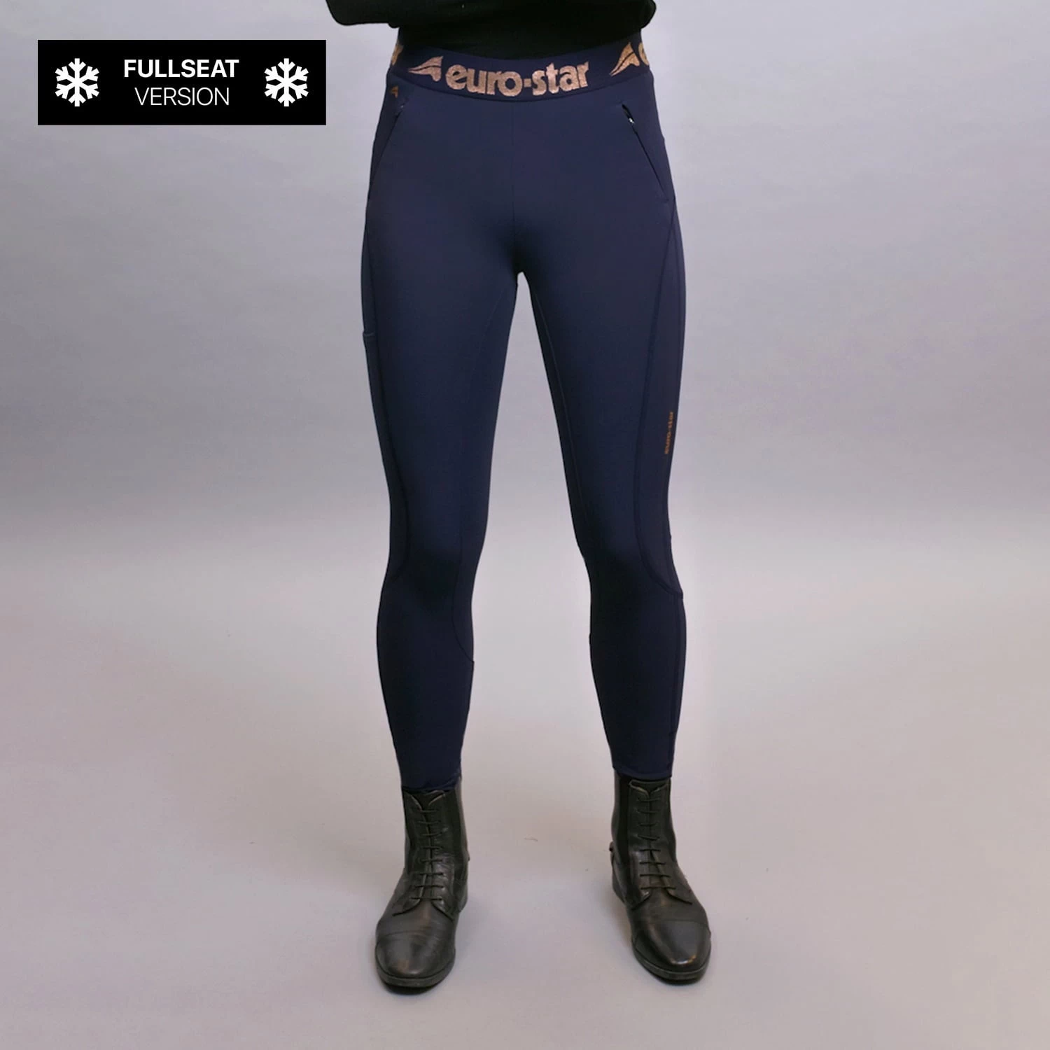 Das Modell Athletic ist in der Softshelll-Variante ein ausgesprochenes Multitalent für den Winter. Ob zum Reiten, Laufen, Radfahren oder als Begleiter ins Fitness Studio – diese Sporthose ist vielseitig einsetzbar. Eine warme Fleece-Innenseite schützt zusätzlich vor kalten Wintertagen. Der attraktive Flex-Gummibund mit euro-star Schriftzug ist auch als Teileinsatz am Beinabschluss angenäht. Die Handytasche ist im vorderen Beinbereich durch einen Reißverschluss gesichert. Das Full-Seat Modell ist mit dem bewährten Lederimitat Clarino Stoff als Besatz ausgestattet.