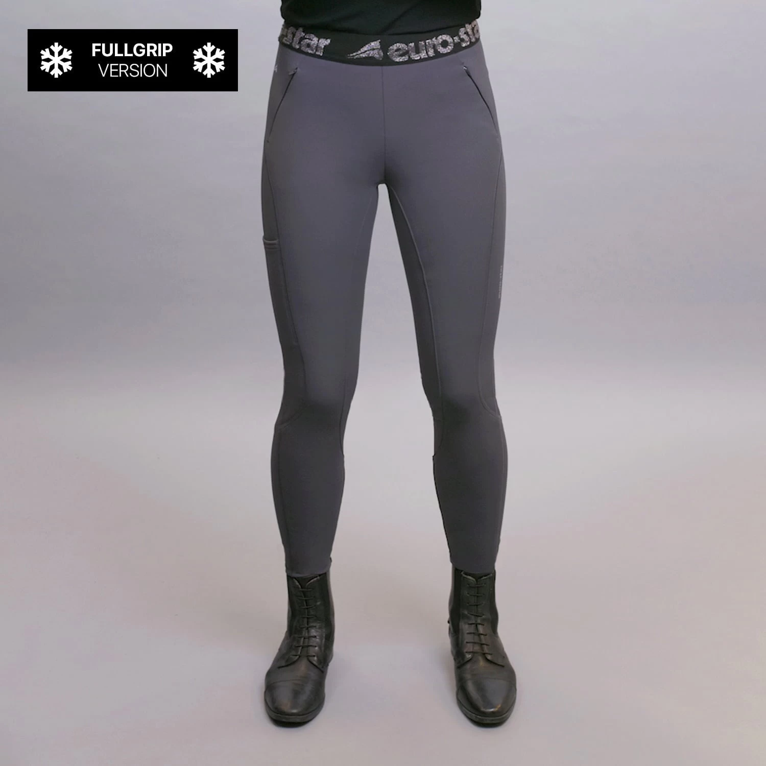 Das Modell Athletic ist in der Softshell-Variante ein ausgesprochenes Multitalent für den Winter. Ob zum Reiten, Laufen, Radfahren oder als Begleiter ins Fitness Studio – diese Sporthose ist vielseitig einsetzbar. Eine warme Fleece-Innenseite schützt zusätzlich vor kalten Wintertagen. Der attraktive Flex-Gummibund mit euro-star Schriftzug ist auch als Teileinsatz am Beinabschluss angenäht. Die Handytasche ist im vorderen Beinbereich durch einen Reißverschluss gesichert. Die Full-Grip Variante mit Silikon-Vollbesatz verfügt zusätzlich über einen Flex-Beinabschluss.