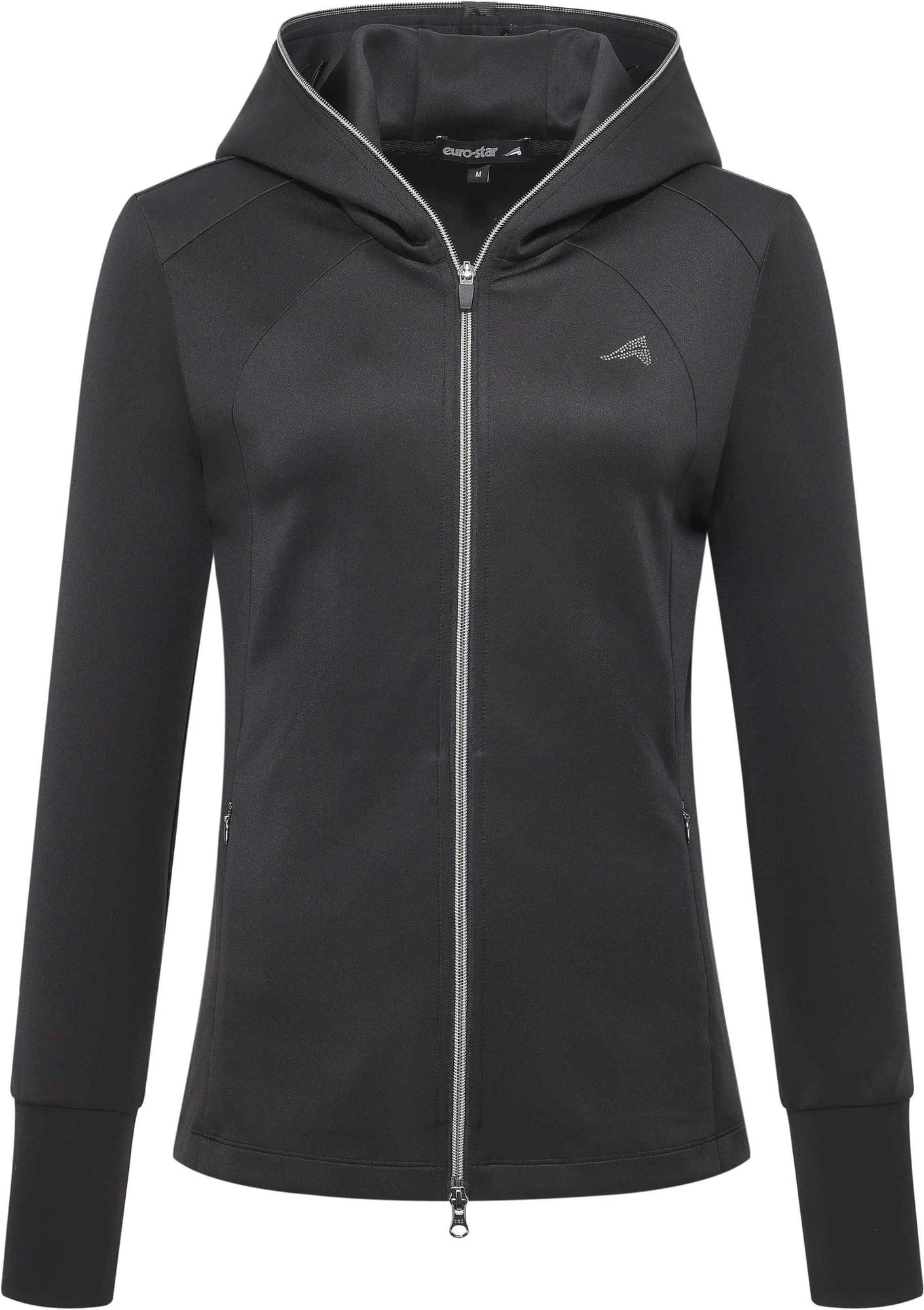 Neben einer weiteren Glitterapplikation an der linken Brustseite, runden versteckte Reißverschluss-Seitentaschen und lange, enganliegende Ärmelbündchen das Design ideal ab. Der körpernahe Schnitt betont eine schlanke Passform außerdem optimal.