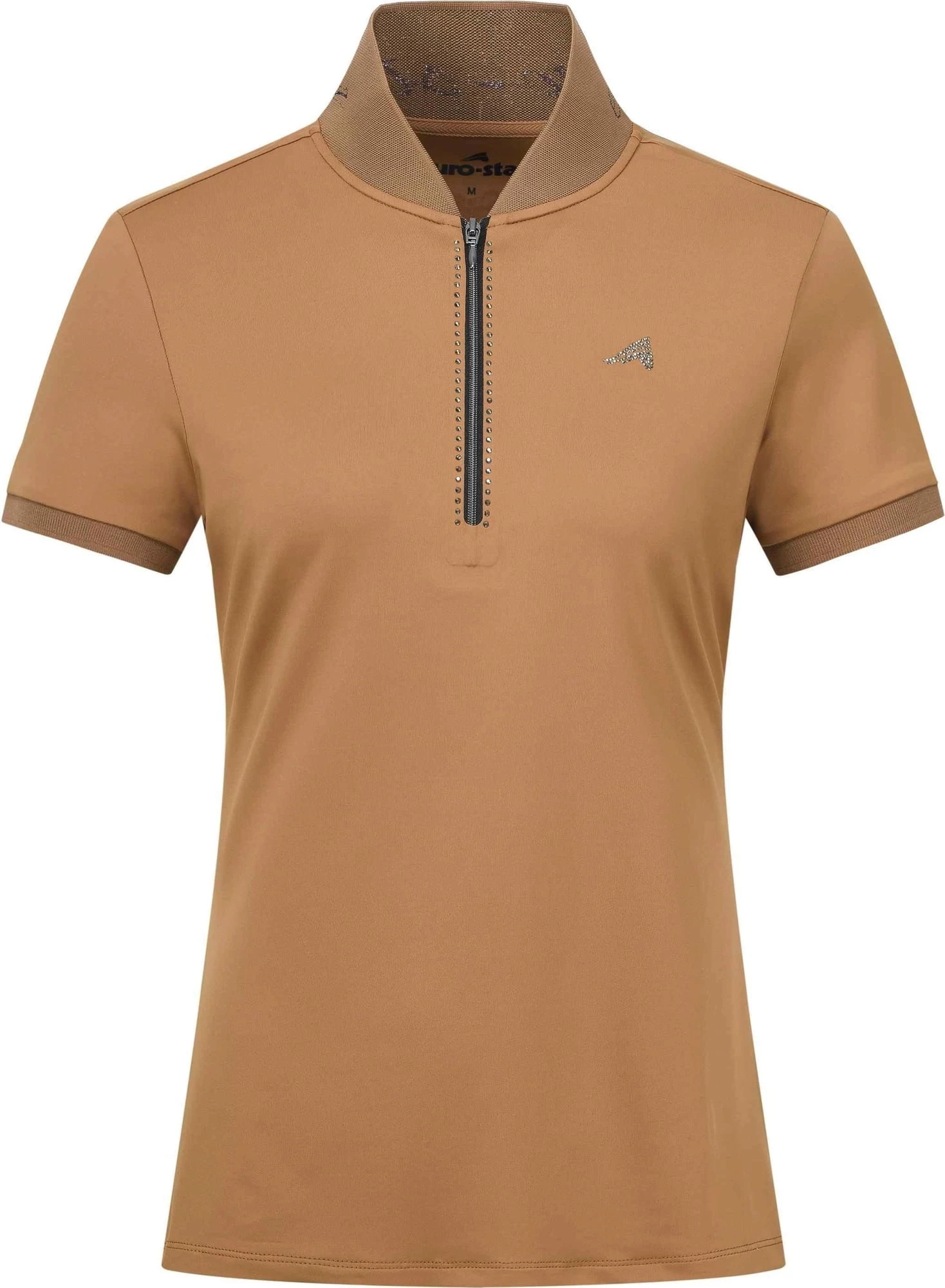 Der moderne, schräg verlaufende Stehkragen aus Rippstrick und mit Lurex-Fäden sowie der mit Strasssteinen umgebene Halb-Zip prägen das Design. Abgerundet durch eine funkelnde Strass-Logo-Applikation.