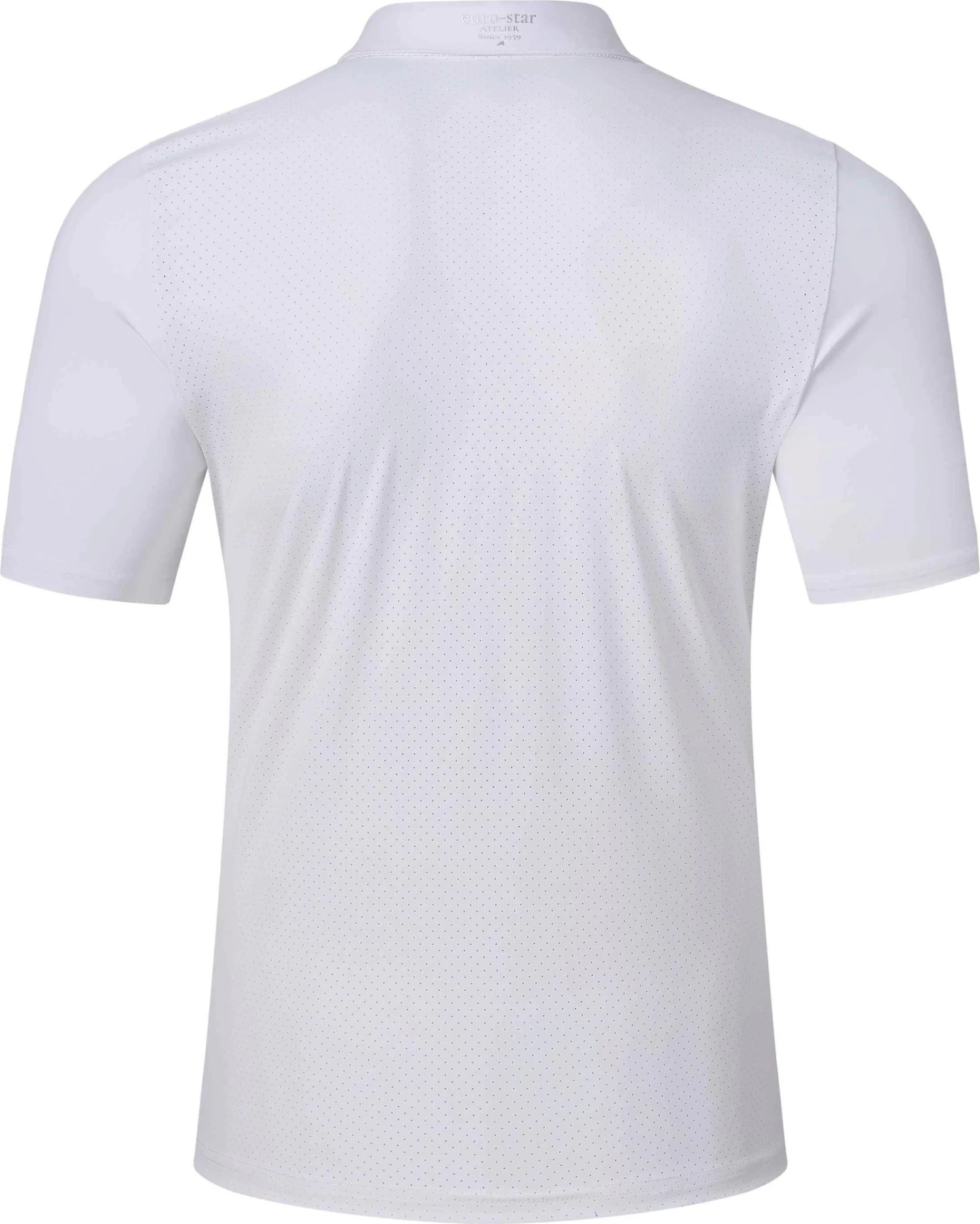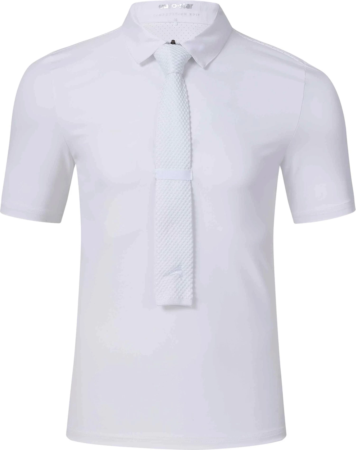 Hochwertiges Turniershirt mit Button-Down-Kragen und abnehmbarer Krawatte. Mit Hilfe einer befestigten Schlaufe kann die Krawatte festgehalten werden. Ein Stricklogo ziert den Kragen sowie den linken Arm.