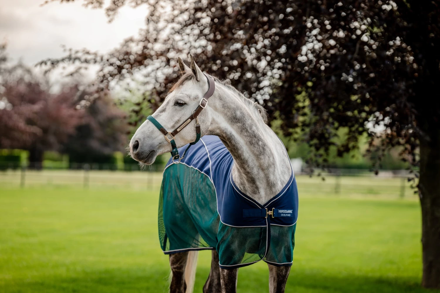 Die Abschwitzdecke aus der Signature Kollektion von Horseware Ireland kombiniert funktionales Hybrid-Polycotton-Gewebe an Schultern, Rücken und Kruppe mit leichtem Polyester-Netzgewebe an den Seiten. Ideal zum Nachschwitzen an wärmeren Tagen.