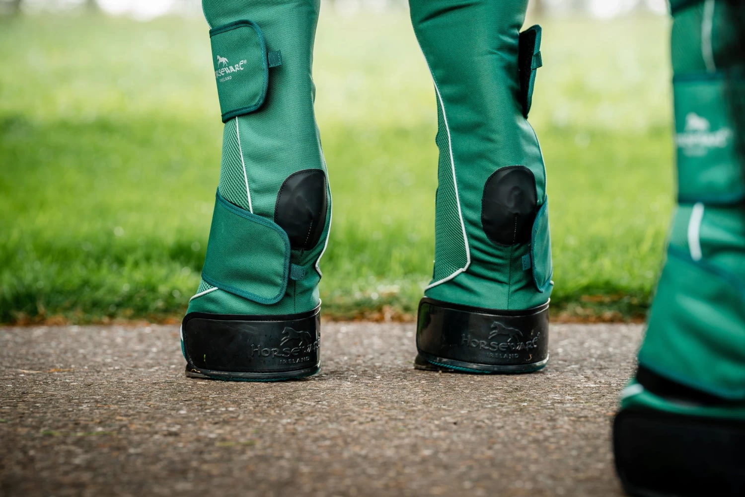 Schütze die Beine deines Pferdes während dem Transport mit den robusten Transportgamaschen Signature von Horseware Ireland. Ihr Hybrid-Design mit Air-Mesh-Einsätzen sorgt für maximale Atmungsaktivität, während weiches Polyester an der Innenseite vor schmerzhaftem Aufscheuern schützt.