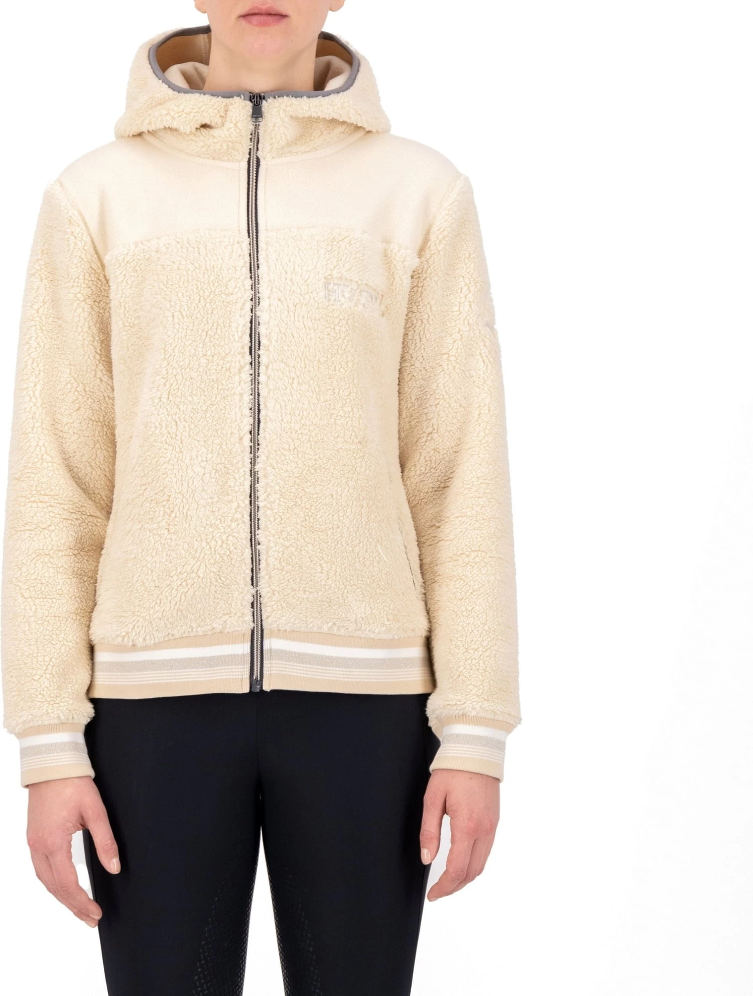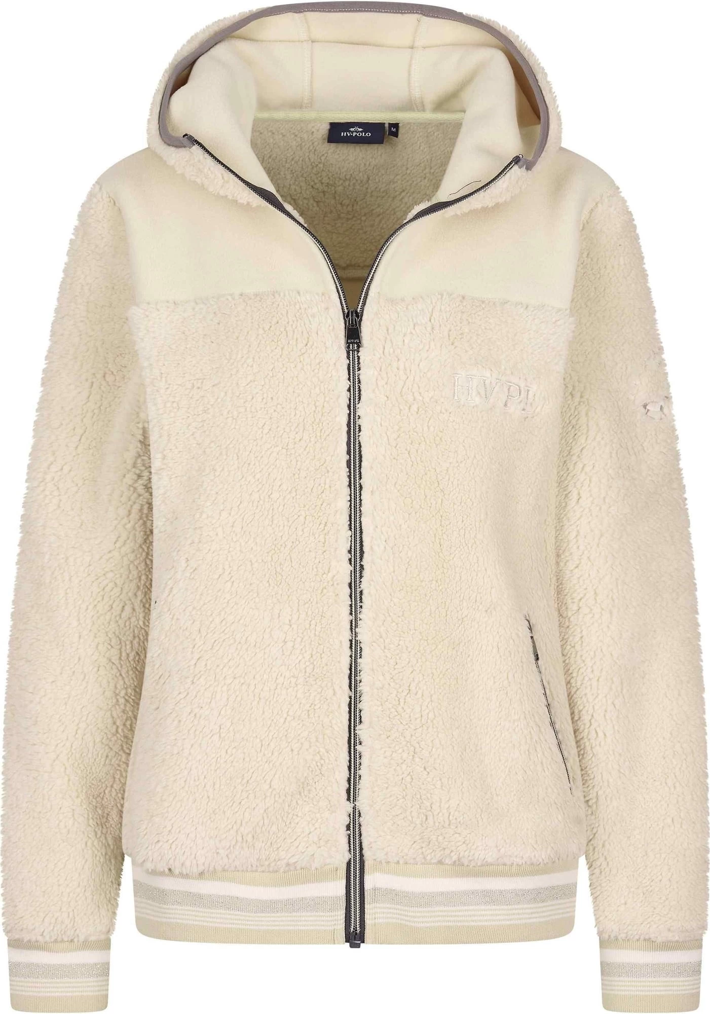 Warmer, flauschiger Fleece-Cardigan mit praktischem 2-Wege-Reißverschluss, wodurch sich die Jacke auch bestens zum Reiten eignet. Die Ärmelbündchen und der Saum aus gemustertem Rippstrick bilden einen tonal stimmigen Abschluss. Ausgestattet mit geräumiger Kapuze und Reißverschluss-Seitentaschen. Stilvolle HV Polo-Applikationen an der linken Brust und am linken Ärmel, inklusive Strasssteine dürfen natürlich nicht fehlen.