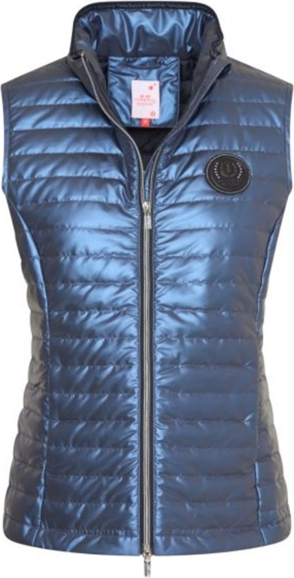 Taillierter Bodywarmer aus wasserabweisendem Gewebe. Seine leichte Wattierung spendet angenehme Wärme an kühleren Tagen und bei lauen Temperaturen. Das glänzende Design wird durch einen Stehkragen mit gebrandeter Gummiband-Umrandung und einem Logo-Patch auf der linken Brust optimal aufgewertet. Mit praktischem 2-Wege-Reißverschluss.