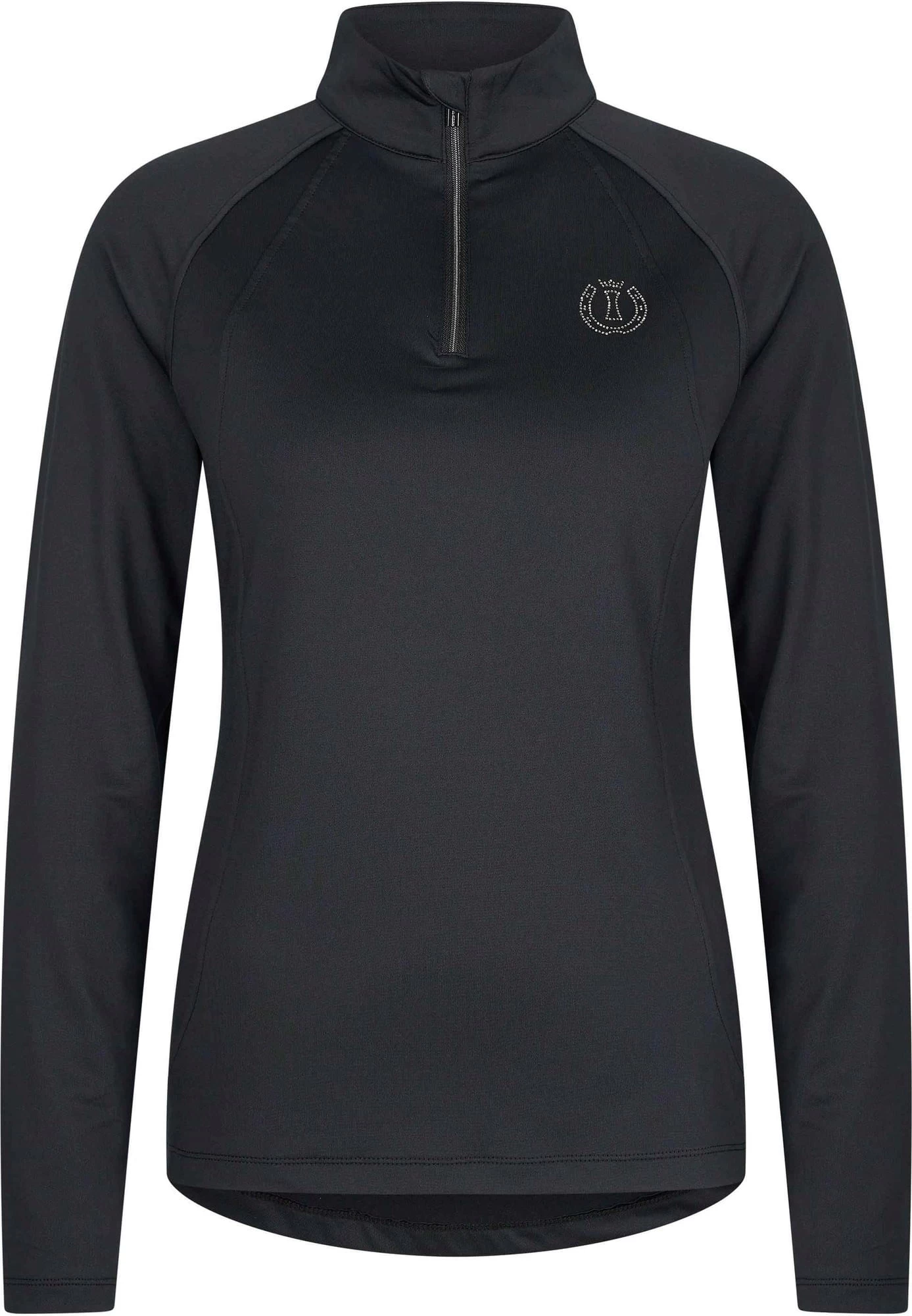 Ausgezeichnete Funktionsware aus Jersey-Tech-Stoff umspielt den Körper mit schnelltrocknenden, atmungsaktiven Eigenschaften und leitet Nässe und Schweiß ideal nach außen ab. Ein Halb-Zip, inklusive Kinnschutz, und ein Imperial Riding-Logo aus Strasssteinchen zieren die Shirt-Vorderseite. Mit weich angerauter Innenseite, ideal für deine Trainingseinheiten im Winter.