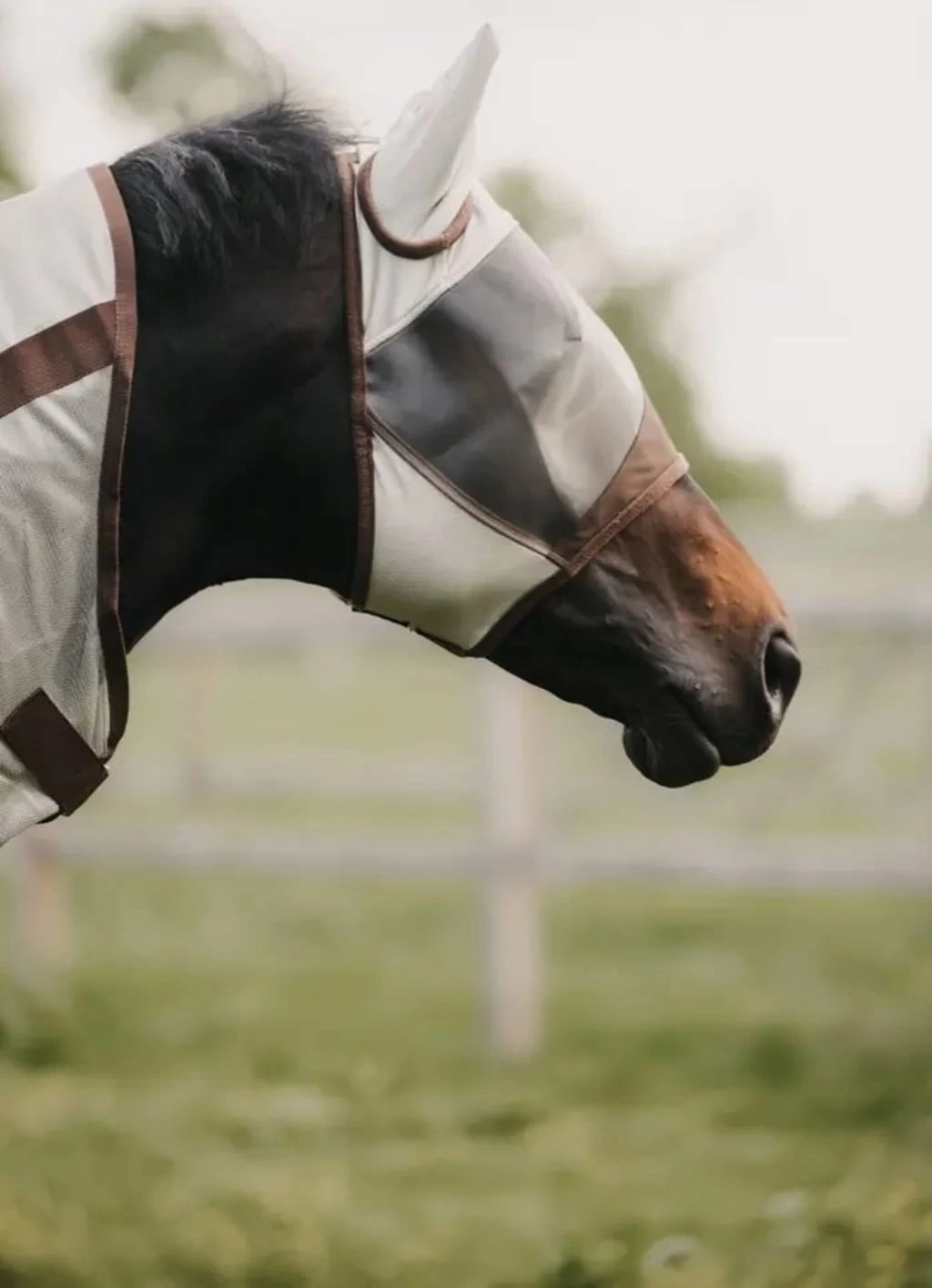 Während diese Fliegenmaske die Augen und Ohren deines Pferdes vor Insekten abschirmt, bleiben die empfindlichen Nüstern frei, dank der weichen Ränder ist die Maske auch äußerst bequem zu tragen.