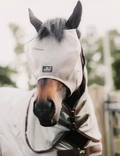 So werden Fliegen und andere Plagegeister geschickt abgewehrt, zudem bewahrt die Maske dein Pferd auch vor UV-Strahlung.
