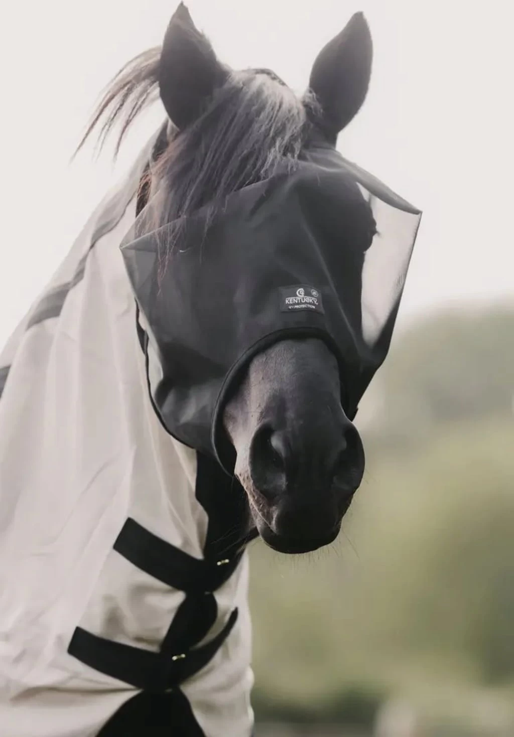So werden Fliegen und andere Plagegeister geschickt abgewehrt, zudem bewahrt die Maske dein Pferd auch vor UV-Strahlung.