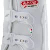 Sie wird unterhalb des Kiefers mit praktischen Klettverschlüssen befestigt und verfügt zudem über einen verstellbaren Schnallenverschluss hinter den Ohren – Nüstern und Ohren bleiben komplett frei.