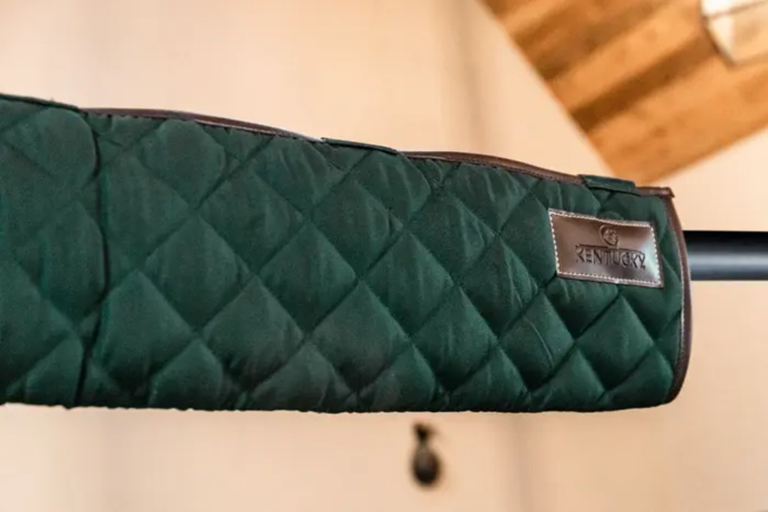 Das Material ist aus 600Denier High Tenacity Polyester und hat einen sehr schicken Look durch die Diamantensteppung, die braune Biese aus Lederimitat und dem dezenten Kentucky Horsewear Logo.