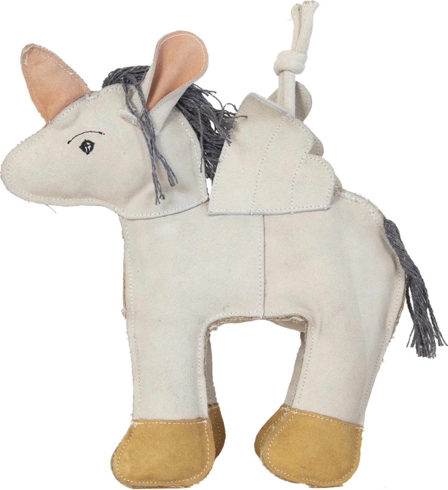 Das Relax Horse Toy ist maschinenwaschbar bei 30°, kein Trockner.