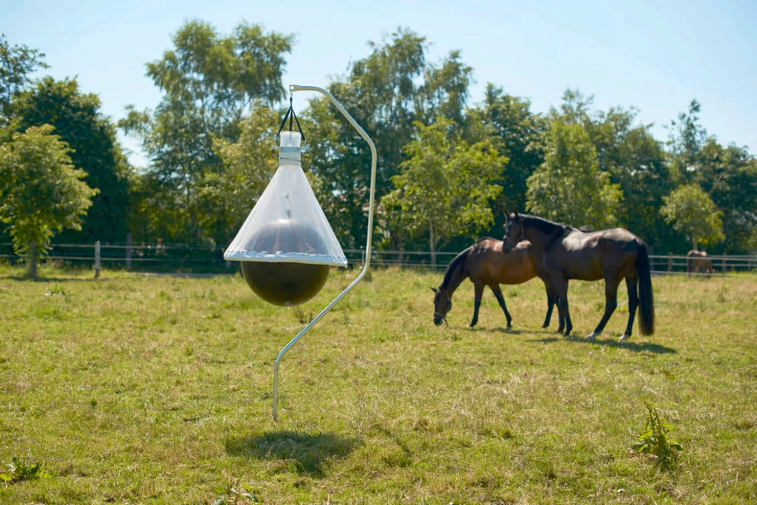 Mit dieser robusten Falle lassen sich Bremsen in der direkten Umgebung um bis zu 95 % reduzieren! So funktioniert es: Der erwärmte Ball erscheint den Bremsen als lohnenswertes Ziel zum Blutsaugen. Nach der missglückten Blutaufnahme heben die Insekten nach oben hin ab und fliegen entlang dem scheinbar einzigen Ausweg in den Fangbehälter.