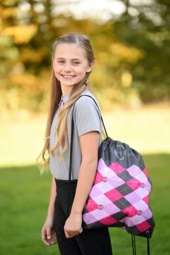 Cooler Sportbeutel aus Polyester, der auch als Turnbeutel oder Wanderrucksack verwendet werden kann. Befüllt mit vielen tollen Putz- und Pflegeprodukten für dein Pferd: Kunststoffstriegel, Mähnenbürste, Pferdekardätsche und Hufkratzer.