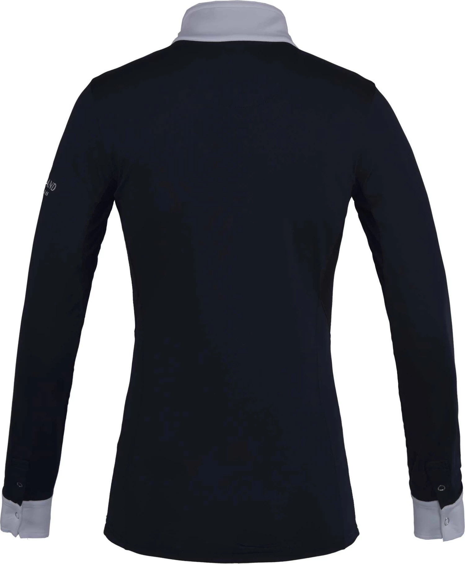 Das technische Gewebe des Turniershirts ist atmungsaktiv und trocknet schnell. Die verdeckte Knopfleiste an der Vorderseite sorgt für eine elegante Optik. Innen im Kragen ist ein dreifarbiges Streifenband zu finden.