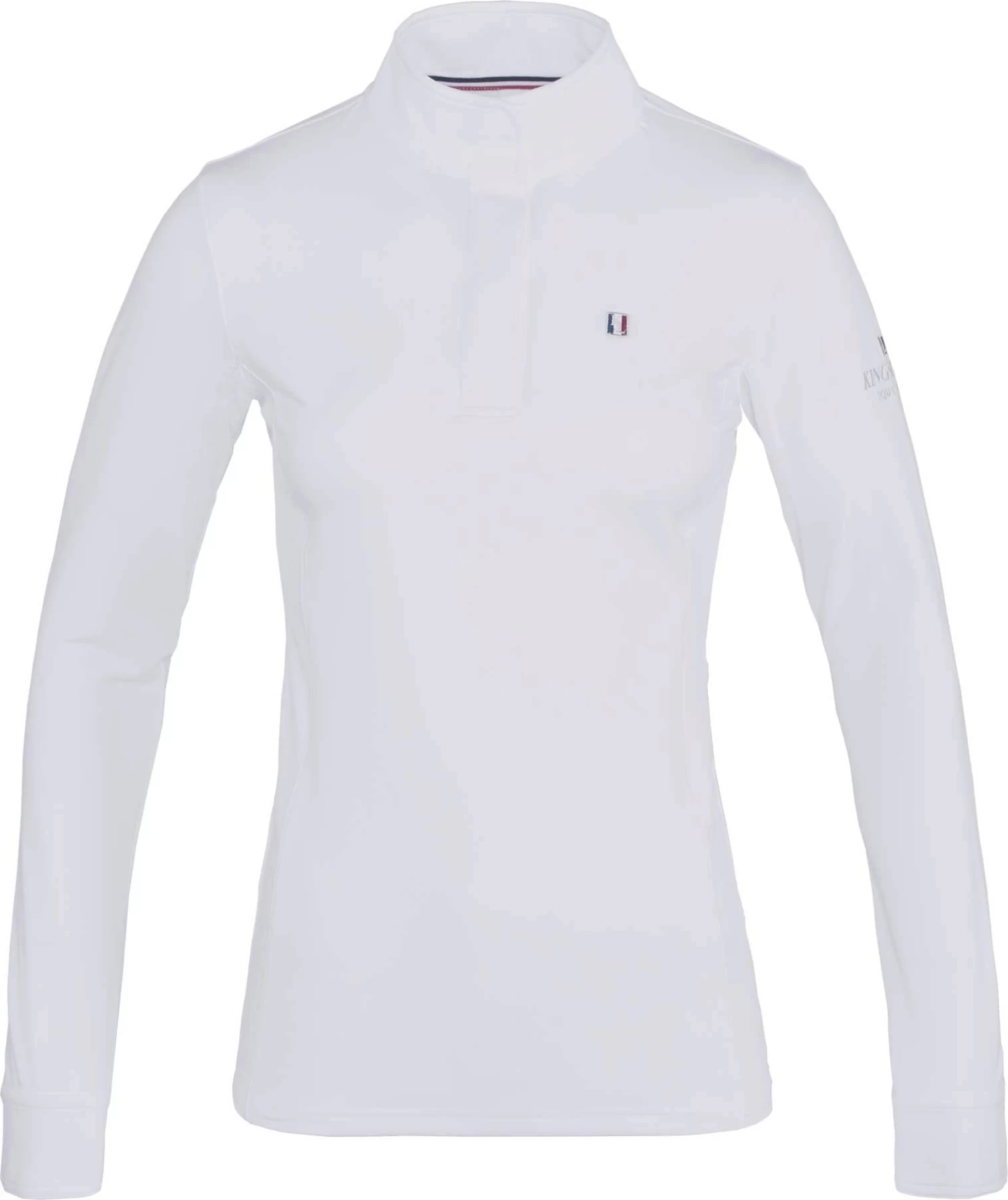Das technische Gewebe des Turniershirts ist atmungsaktiv und trocknet schnell. Die verdeckte Knopfleiste an der Vorderseite sorgt für eine elegante Optik. Innen im Kragen ist ein dreifarbiges Streifenband zu finden.