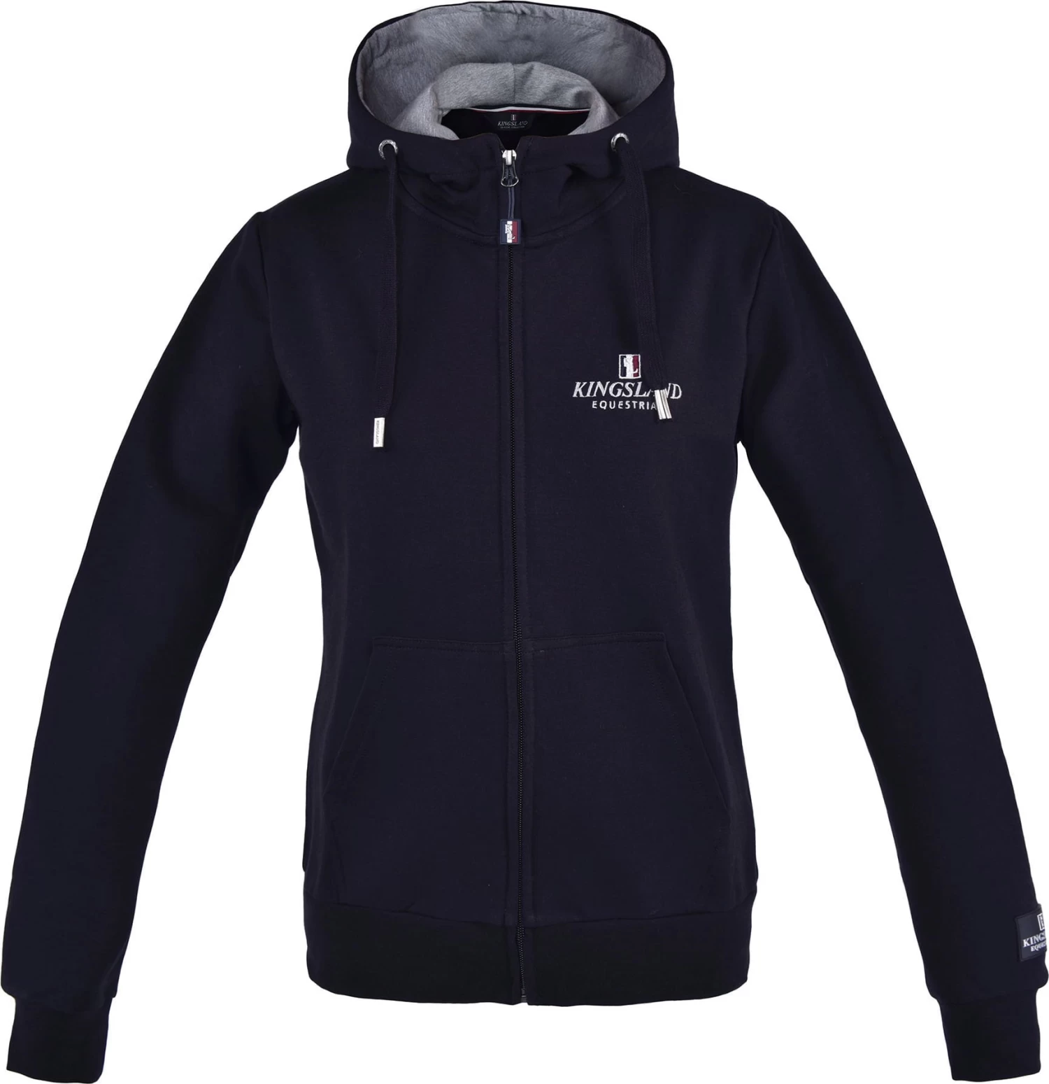 Die Unisex Sweatjacke verfügt über eine Kapuze, sowie zwei Fronttaschen. Für die Optik sorgen dezente „Kingsland“ Stickereien, sowie ein Silikon-Logo am linken Ärmel.