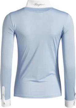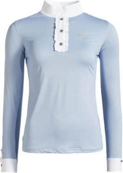 Stylisches Langarm Turniershirt mit verspielten Details. Das Oxford-ähnliche Material besitzt funktionale Eigenschaften, ist dehnbar und schmiegt sich der Haut angenehm an. Der gewebte Kragen, breite Manschetten und eine Knopfleiste mit Rüschen betonen den extravaganten Stil. Logo-Stickerein an Brust und Kragen, sowie ein zierliches Metallpatch und Kristallknöpfe runden den Look optimal ab.
