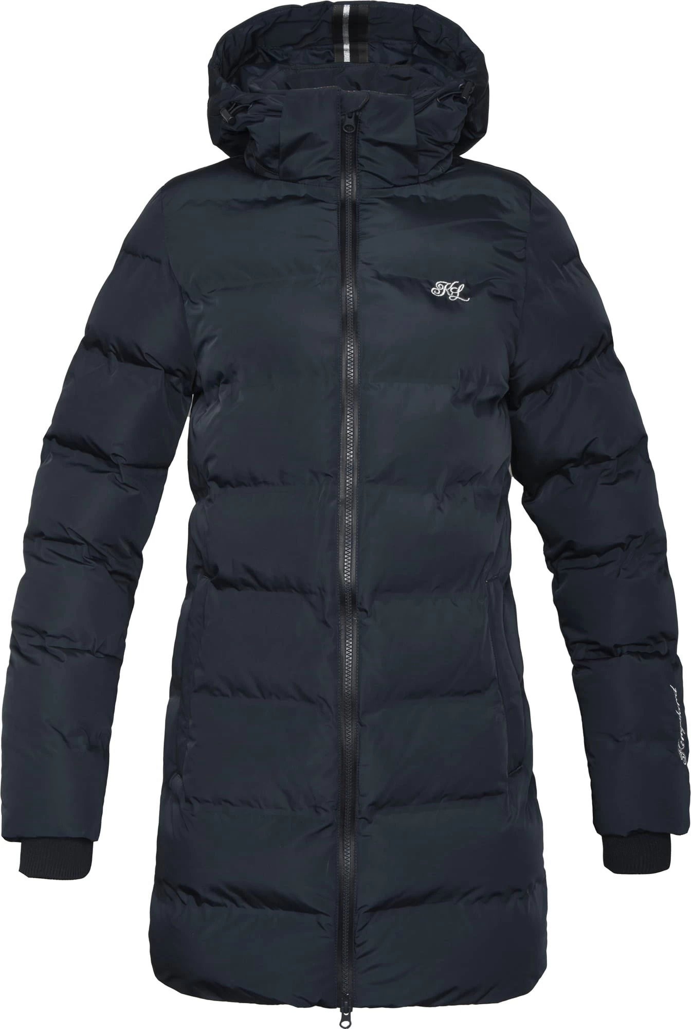 Trotz der üppigen Wattierung zaubert der figurbetonte Schnitt eine schlanke Silhouette. Logo-Applikationen an der Brust und an der Kapuzenrückseite setzen markentypische Akzente.