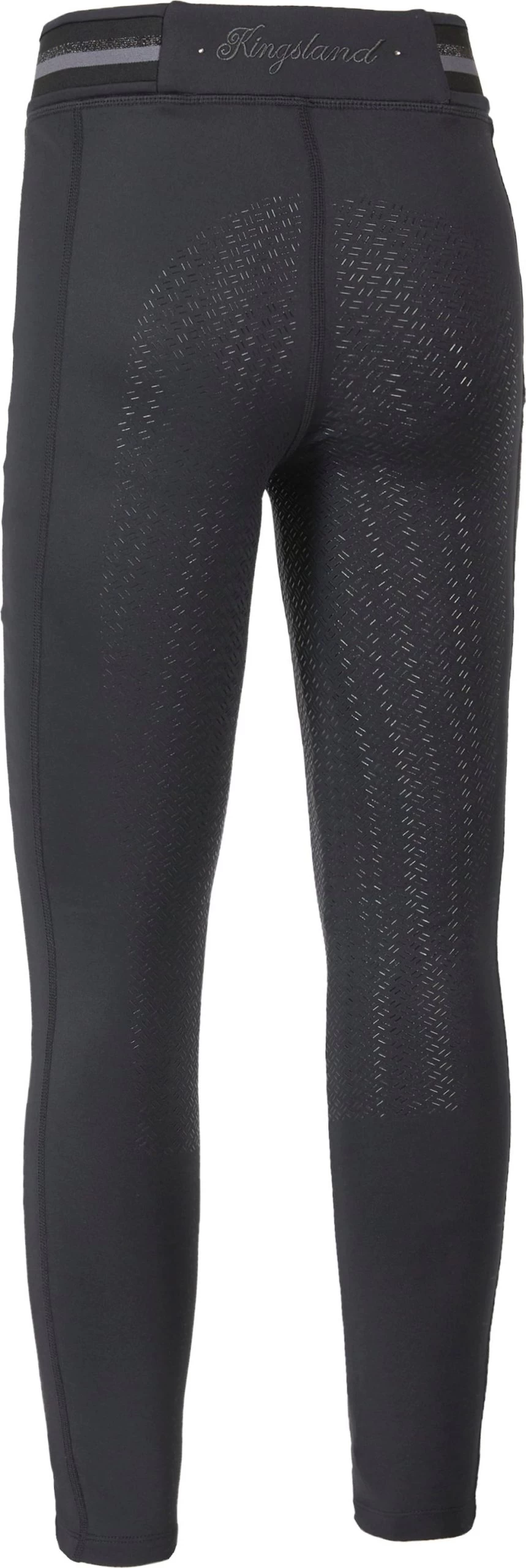 Glamouröse Details setzen diese Reithose garantiert in Szene. Ein gestreiftes Gummiband entlang des Bundes wiederholt sich an der Handytasche und setzt schöne Akzente. Unterstrichen von einer Kingsland-Stickerei an der Bundrückseite und einer weiteren KL-Stickerei auf der Einschubtasche. Perfektioniert durch tonale Nähte und kleinen Strasssteinen am Logo-Schriftzug.