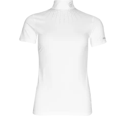 Optisch ein wahrer Hingucker und mit Highend-Funktionseigenschaften absolut komfortabel zu tragen. Das verspricht das ‚KLHarmonie‘ Turnier Shirt von Kingsland. Der angenehme Jaquard-Stoff wirkt atmungsaktiv, antibakteriell und trocknet schnell. Zudem ist der Stoff UV-resistent und somit das optimale Shirt für sommerliche Turniertage. Ein hübsches, auffälliges Silberdruckmuster ziert das Shirt abwärts des Kragens. Glamouröse Kingsland-Applikationen am Kragen und linken Ärmel setzen ein stimmiges Finish. Mit Reißverschluss hinten.