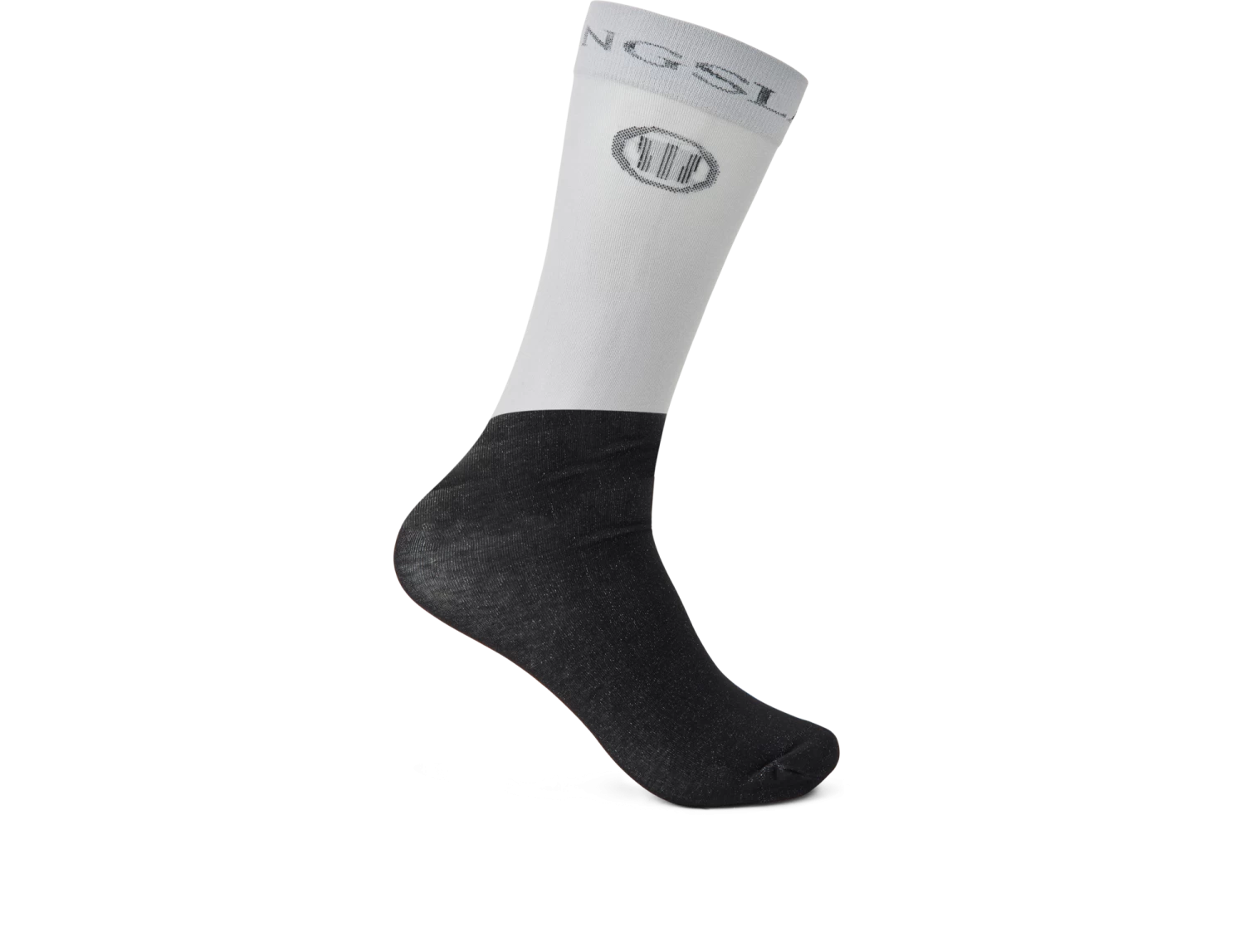 Funktionale Kombination aus dehnbarem Baumwollgemisch am Fußteil und dünnem, dehnbarem Nylon am Bein. Die leichte Struktur passt sich Fuß und Bein ideal an und bringt angenehme Trageeigenschaften mit sich. Mit Kingsland-Schriftzug am Saum und sportiver Kollektions-Applikation an der Wadenaußenseite.