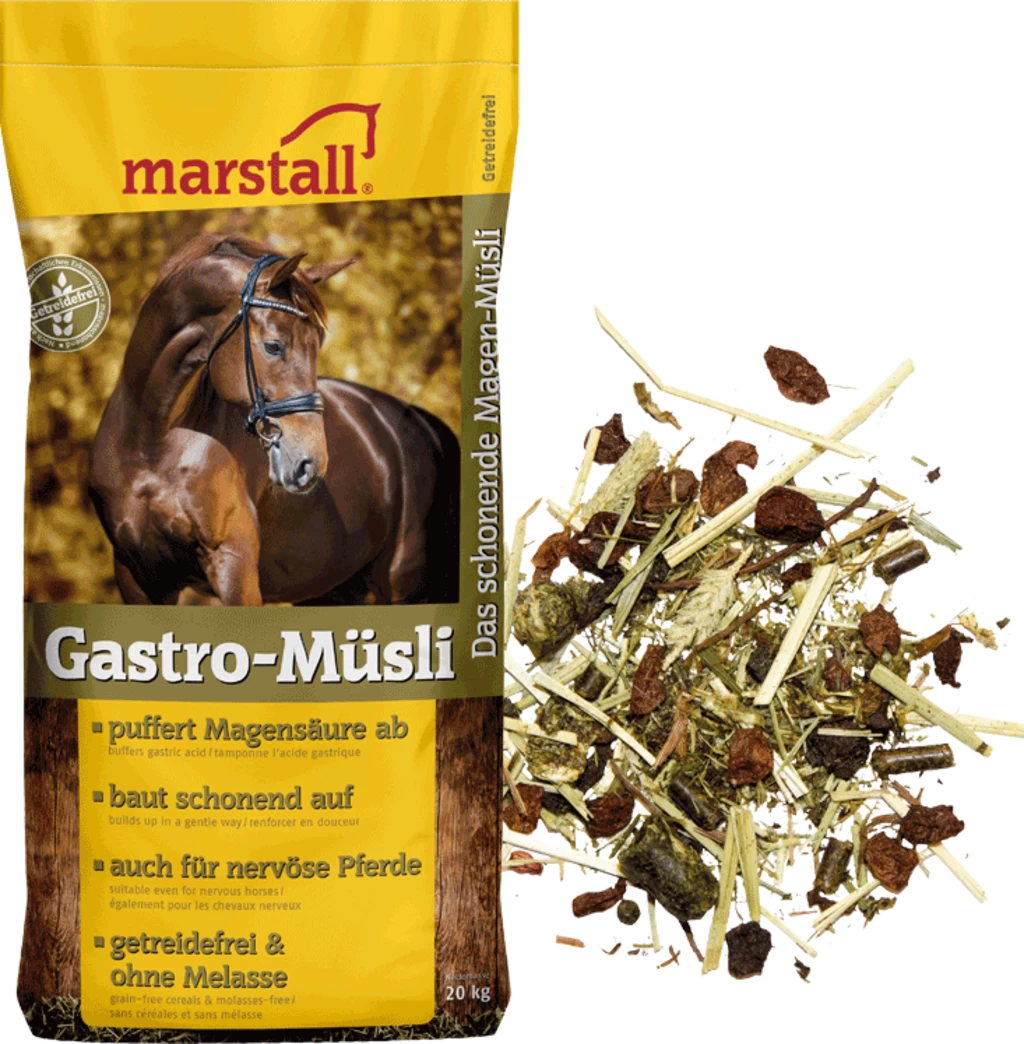 Nicht nur Pferde mit einem empfindlichen Magen profitieren von dem schmackhaften Gastro-Müsli. Die getreide- und melassefreie, Magensäure puffernde sowie optimal verwertbare Rezeptur eignet sich auch für nervöse und dünne Pferde.