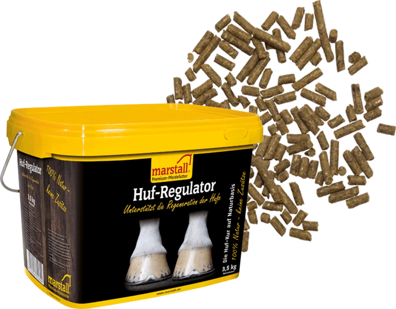 Der Huf-Regulator von Marstall kombiniert organisch gebundene Spurenelemente, Aminosäuren und Vitamine mit weiteren natürlichen Zutaten, welche gezielt zur Unterstützung der Hufqualität und des Hufhornwachstums ausgewählt wurden. Dabei verzichtet die Rezeptur auf hohe Biotin-Mengen und ergänzt die Formel mit sorgfältig ausgewählten Kräutern.