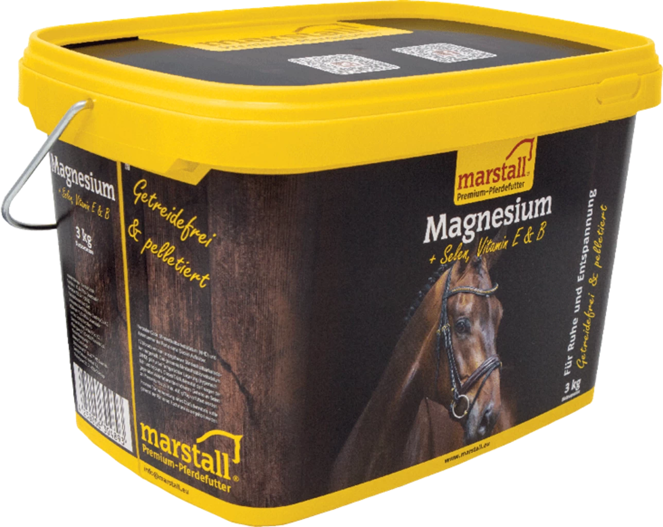 Im Marstall Magnesium ist die organische Form Magnesium-Fumarat enthalten, welche für den Körper besonders gut verfügbar ist. Ebenso beinhaltet die Rezeptur die Vitamine B und E, Calcium und Selen. Dank dieser Kombination wird ein Abbau freier Radikale, der Energiestoffwechsel sowie die Sauerstoffversorgung der Muskelzellen unterstützt. Der hochwertige Futterzusatz wirkt sich positiv auf das Nervenkostüm und die Muskulatur aus und eignet sich ideal bei starker Beanspruchung.
